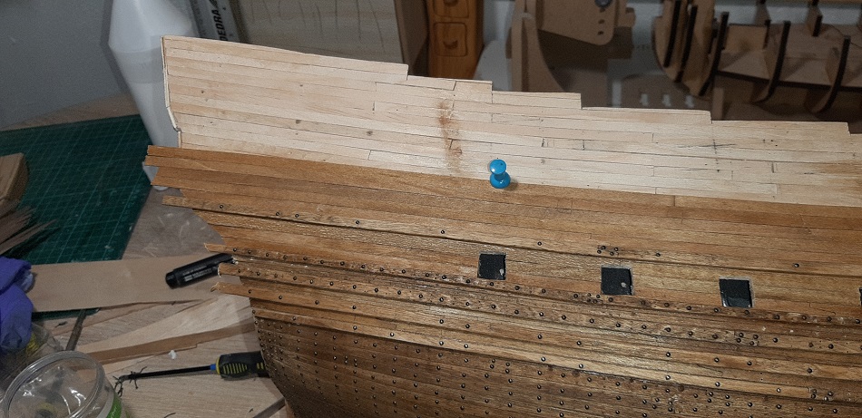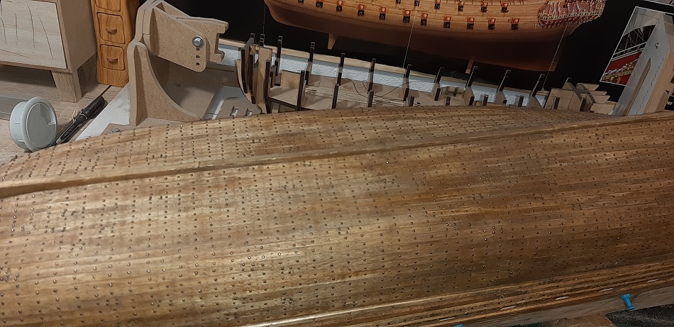 Koniec poszycia zakładkowego jak i odbojnic, teraz tylko kołkowanie :twisted: