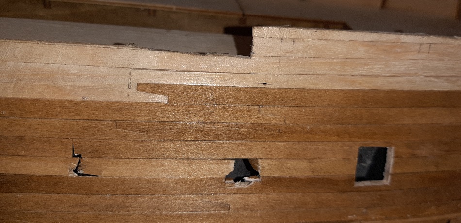 Niestety odbojnic na tym etapie już się nie da zgrać-trzeba było to zrobić przed jakimkolwiek poszywaniem kadłuba-trudno-nauczka na przyszłość.
