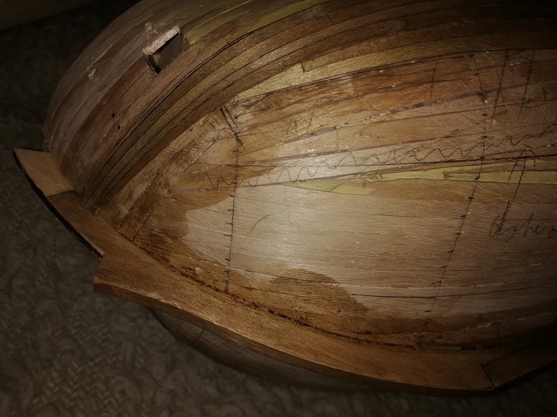 Jeśli chodzi o szablony (temat rzeka) to próbowałem z battenami, wszystkie schodziły się w 1 punkcie, więc świadomie z nich zrezygnowałem. Pomysł na łączniki co około 10cm zaczerpnąłem z książki "the royal warship vasa" tam jeden kończył się właśnie na długości ok. 10cm, więc wykminiłem, że tak ma być w każdej, obecnie stopniowo staram się zwiększać długości, i tak pierwsze rzędy zakryje belka odbojowa (może 2).