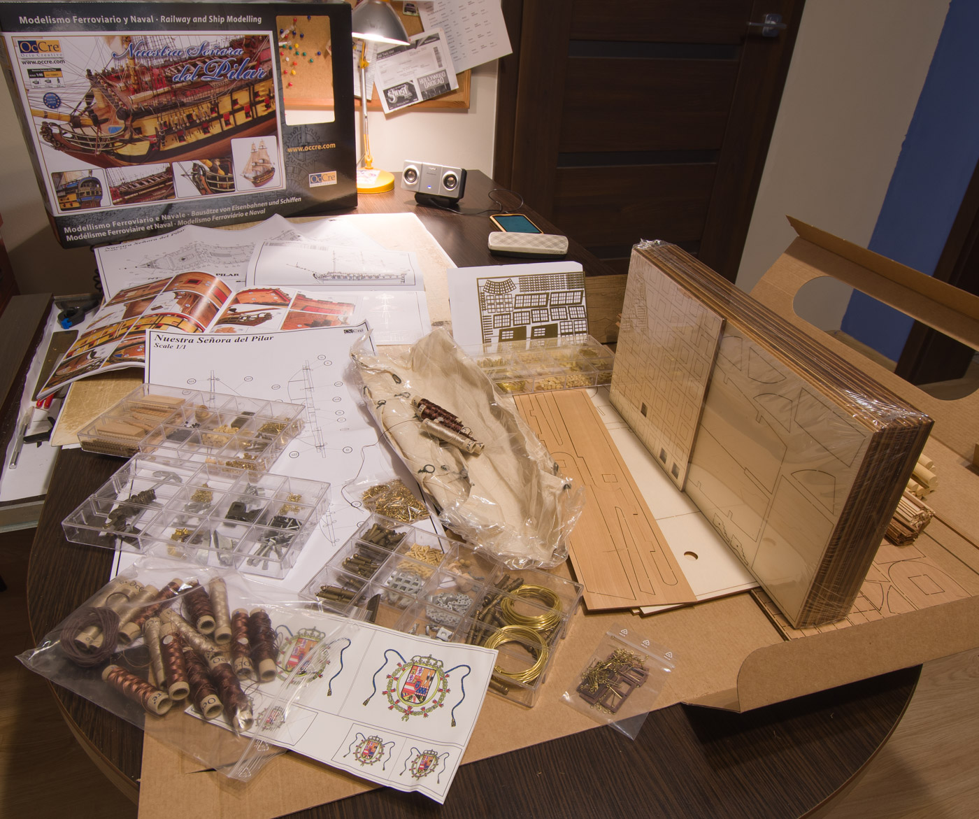 Nuestra Senora del Pilar [NSdP]- od dłuższego czasu z zaciekawieniem oglądałem ten model ze stajni OcCre. Jest to jeden z hiszpańskich galeonów handlowych z XVIII w. kursujących na trasie Manila-Acapulco. Model wykonany w skali 1:46.