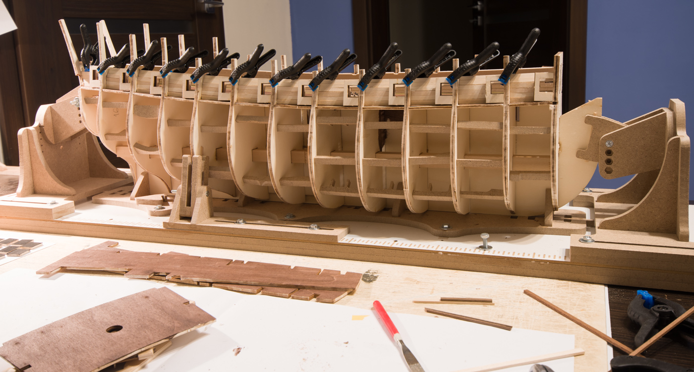 - Poskładałem część konstrukcji, na razie brudno, ale to dopiero początki. Ktokolwiek kiedyś się zabierze za ten model to zagadka: która to wręga 6, a która 8. Mi się jakoś pożeniło, choć do końca nie jestem przekonany czy dobrze.