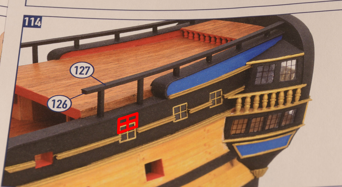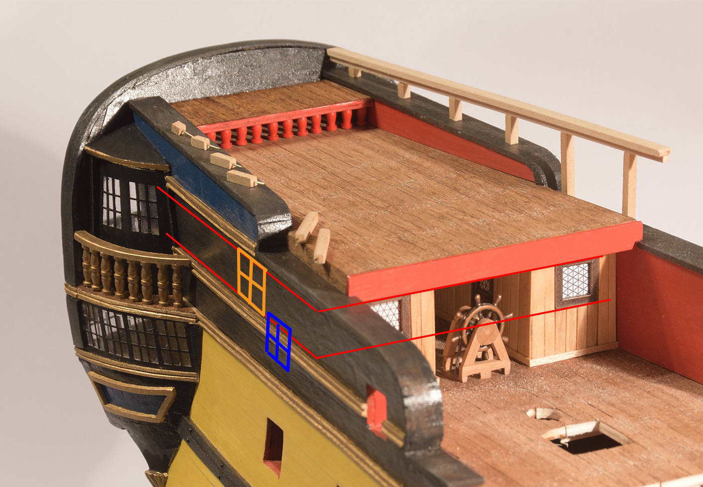 Powoli dochodzę do okienek bocznych i tutaj mam pytanko. Według instrukcji okienka powinny biec w listwie ozdobnej (kolor niebieski), na wysokości ud !? Czy tak faktycznie mogło być? Z poziomu innych okien powinny wyjść wyżej (kolor pomarańczowy).