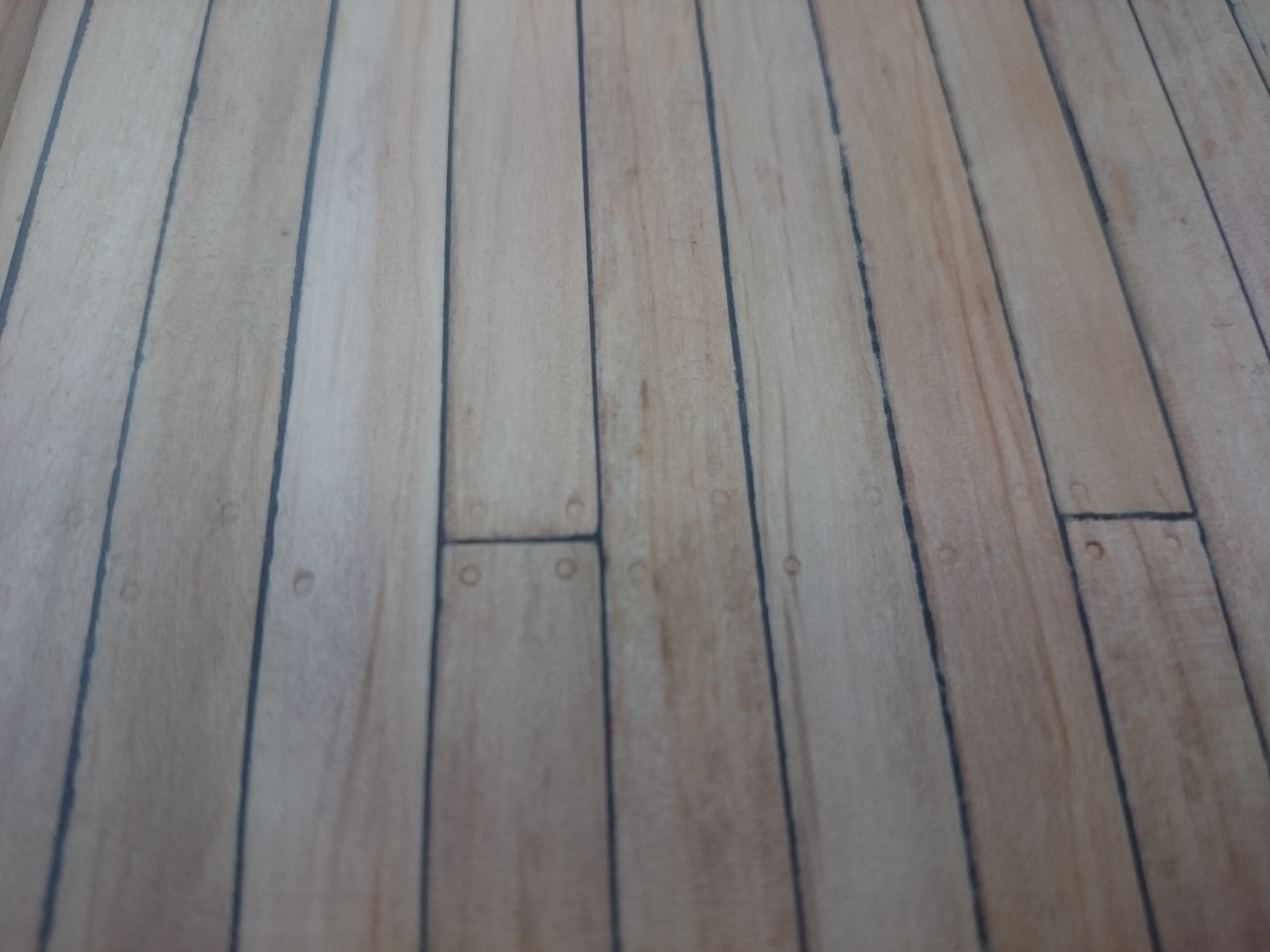 Kazde dawanie jakichs precikow z ciemniejszego drewna niesie ze soba problem, najpierw wymodelowania takich precikow i potem po wpuszczeniu ich w nawiercone otwory i obcieciu, beda one zbyt ciemne do calosci jasnego pokladu, i stad zbyt kontrastowo wyrozniajace sie od tych prawdziwych.