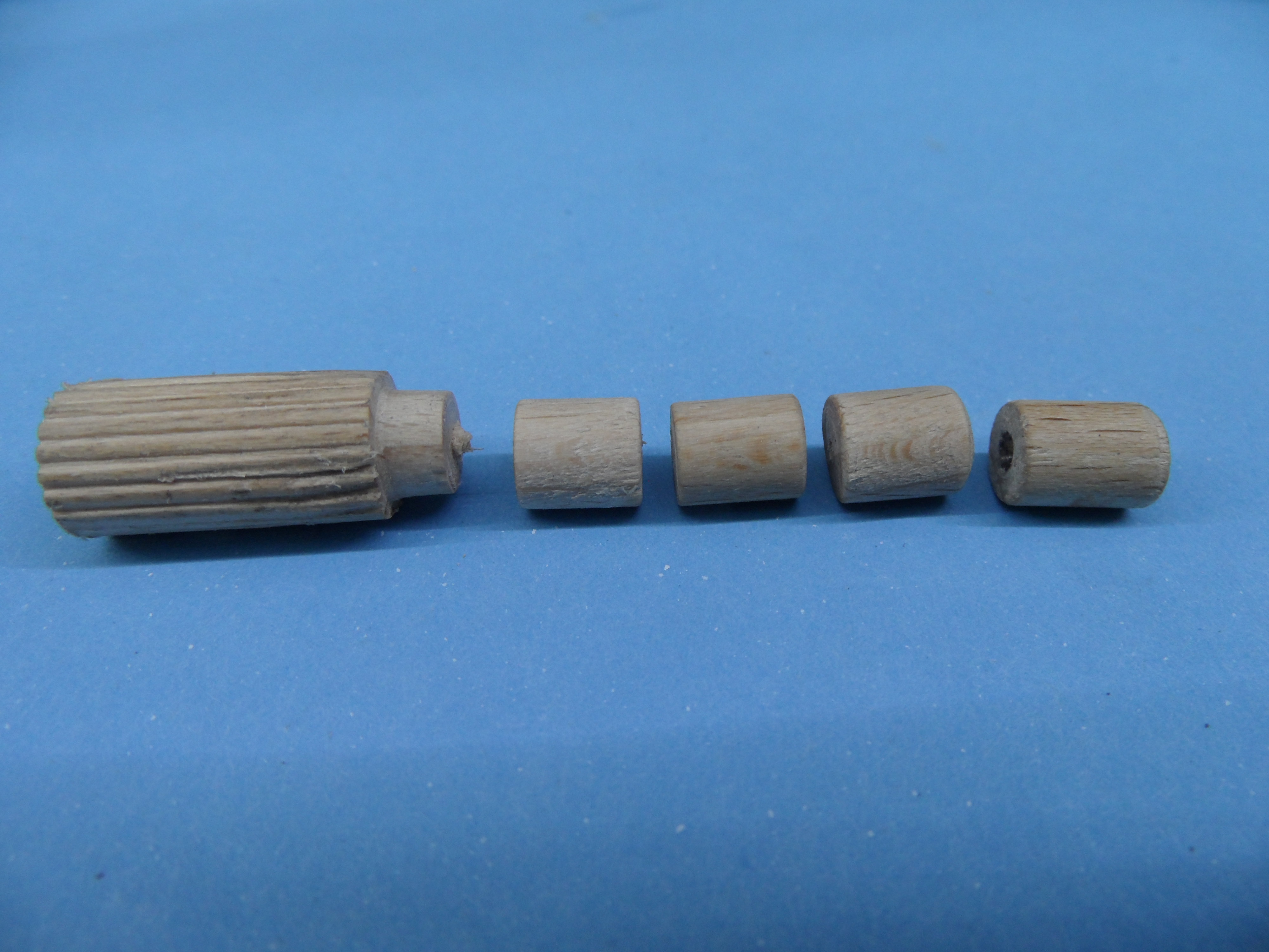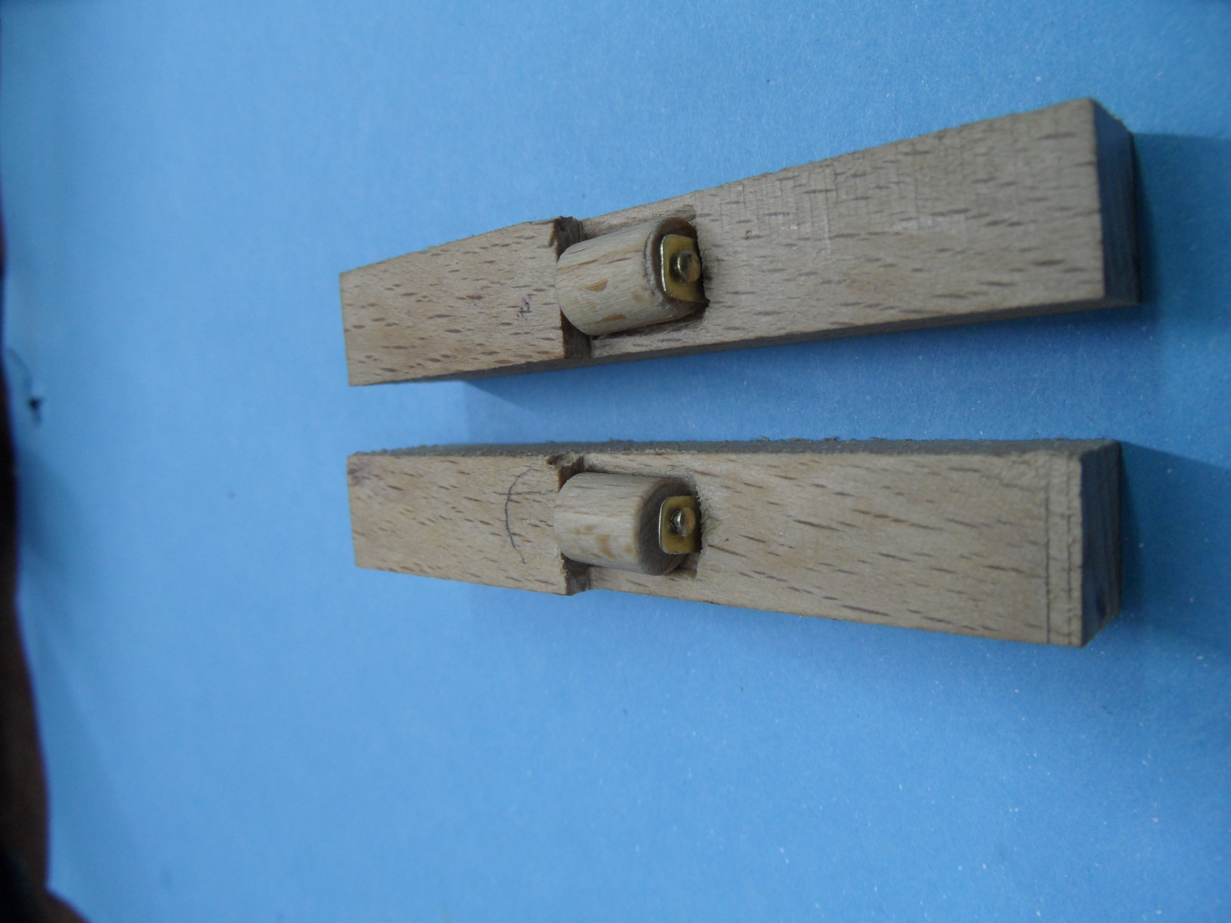 b. rolki wykonane z wałka bukowego fi 10 mm do średnicy fi 6 mm przy pomocy małej tokarki, dłutka i pilnika płaskiego