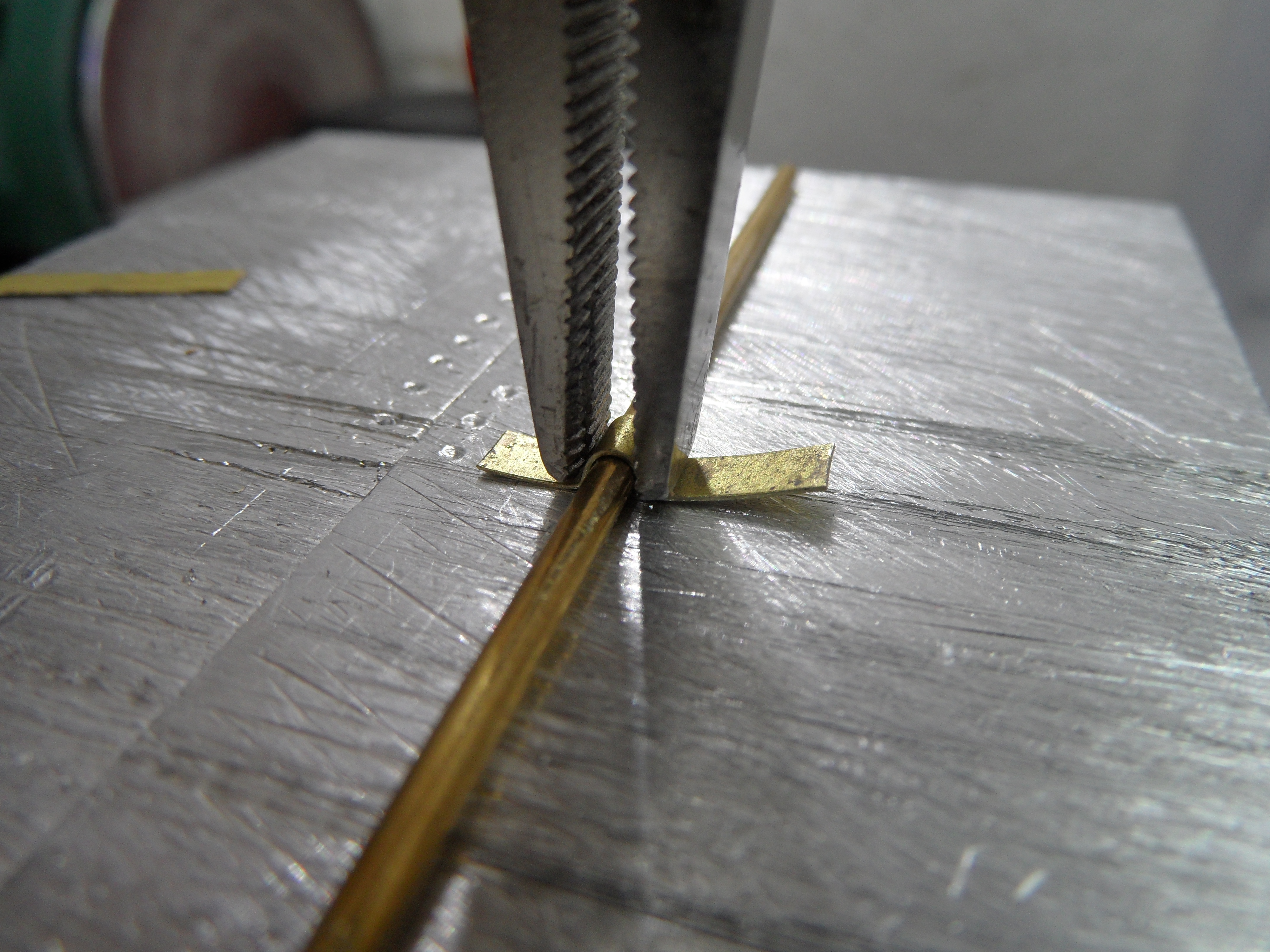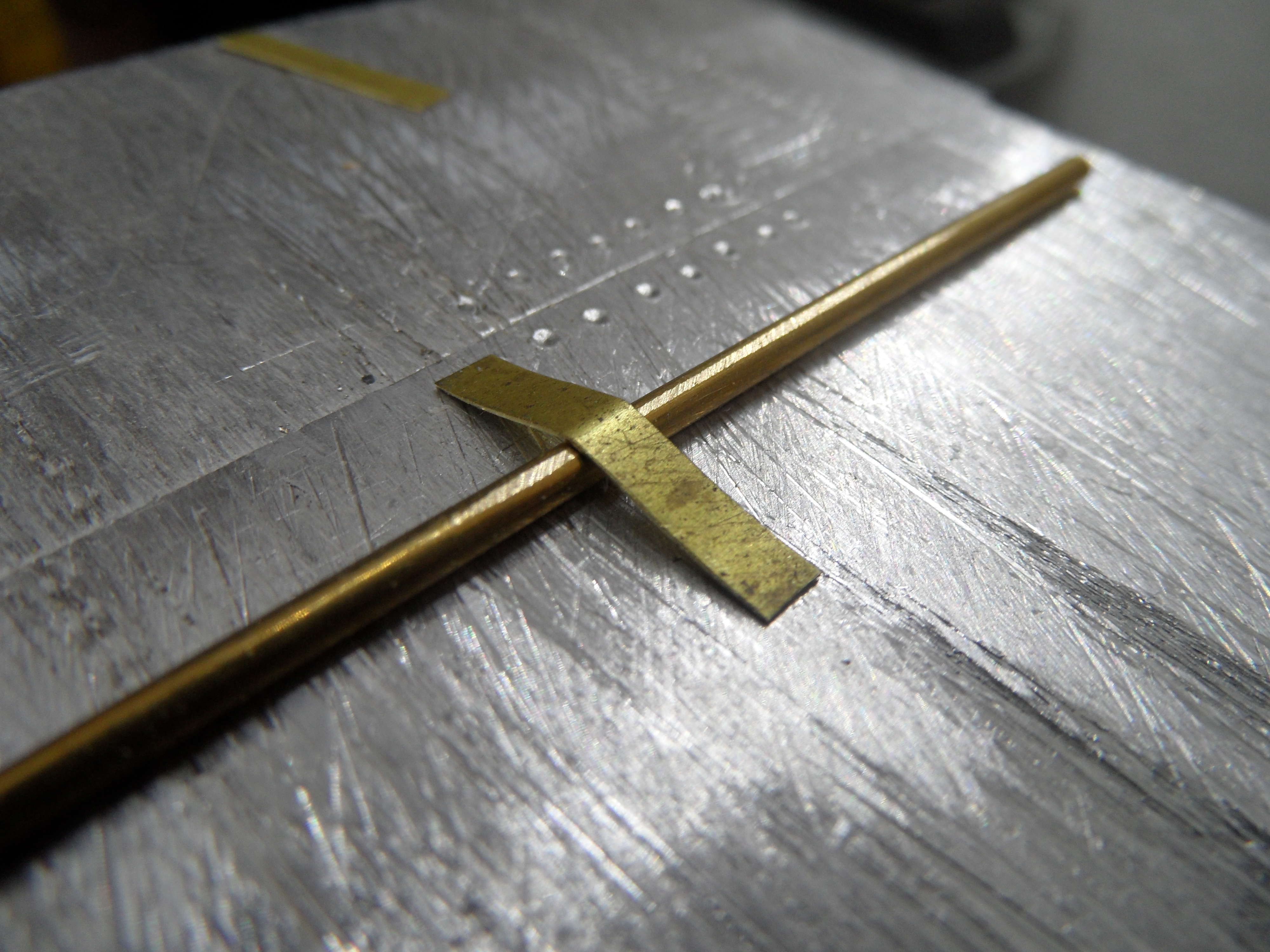 Wyżarzony nad palnikiem gazowym kuchenki drut fi 0,7 nawinięty na drut osi 1,2 mm.