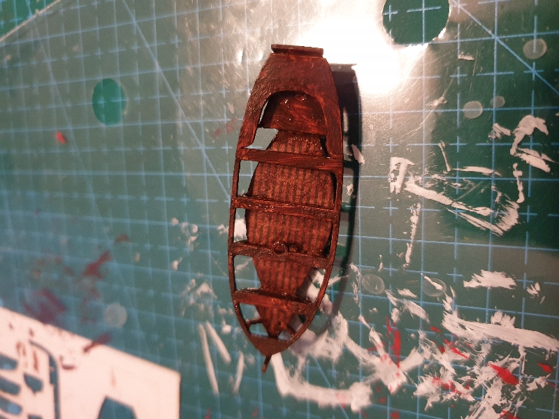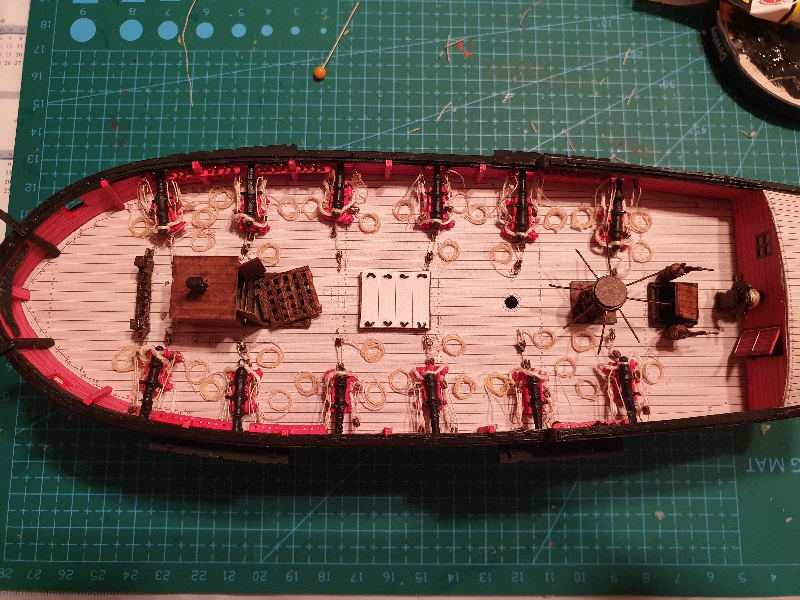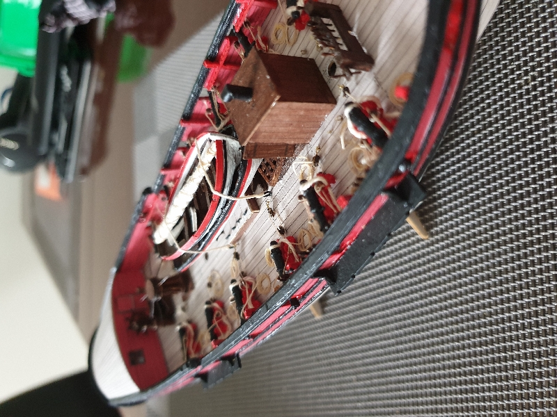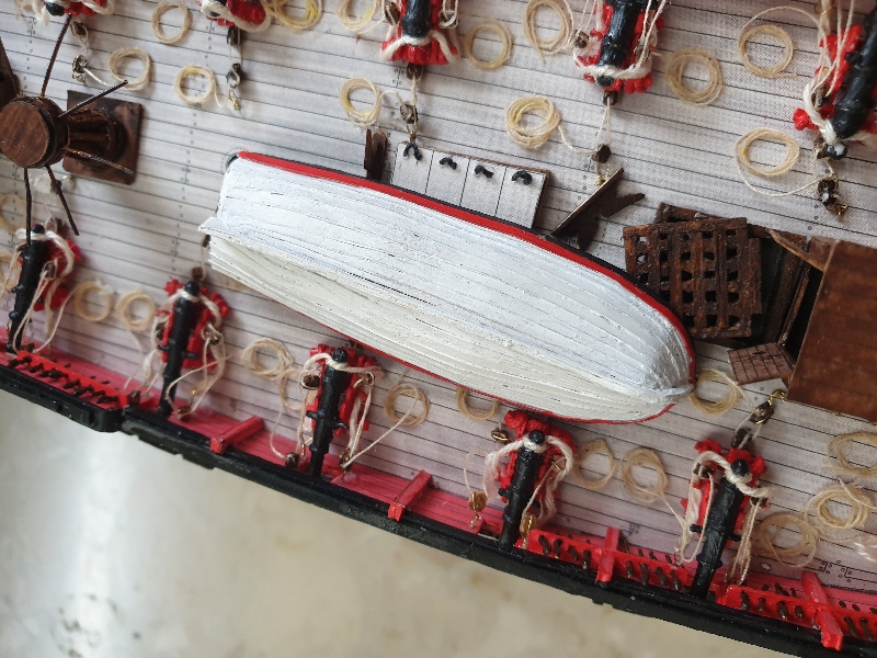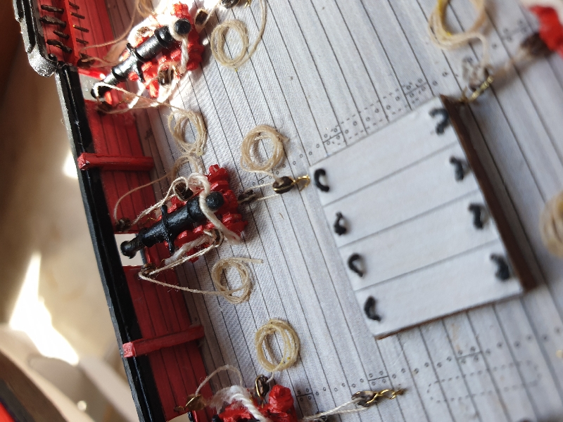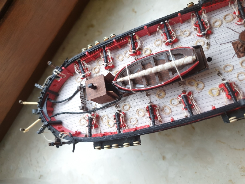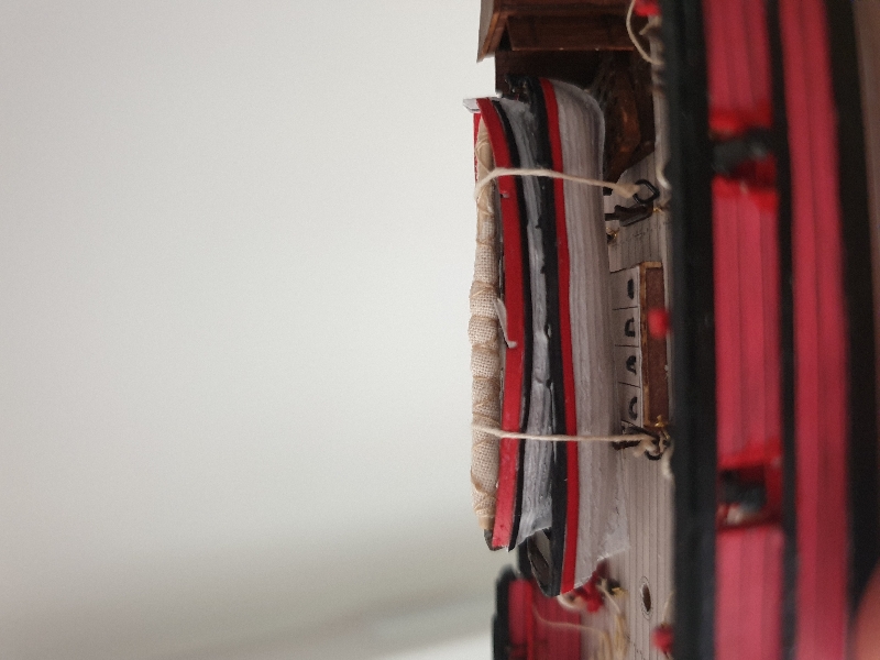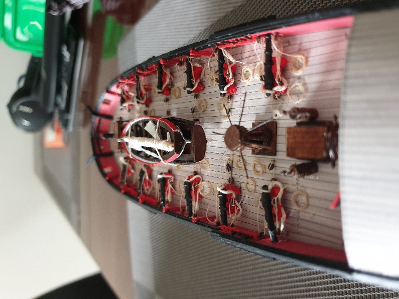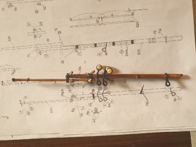 Szlupy zamontowane, jeszcze kotwice, knagi i jufersy i przesiadam się z powrotem na wersję drewnianą aby dociągnąć do tego samego stanu.