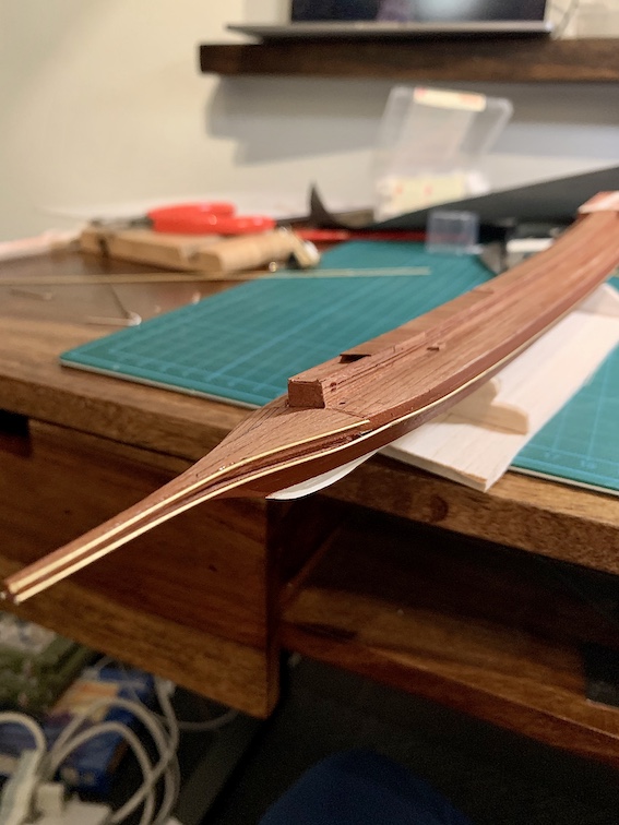 Nieodmiennie trapi mnie wątpliwość co do tego jak wykonać złocone odbojnice? biegnące od rufy do dziobu galery. Na zdjęciach ewidentnie mają przekrój owalny co utrudnia trwałe klejenie innego materiału niż drewno do drewna. Sytuację pogarsza fakt że burty malowane. Waham się między gięciem drewna lub zastosowaniem elastycznego profilu z evergreena - tutaj w grę wchodzi jedynie cyjanoakryl.