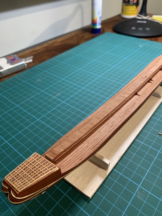 Dodałem jakieś elementy drewnianej posadzki rufowej - stan przed pokostowaniem.