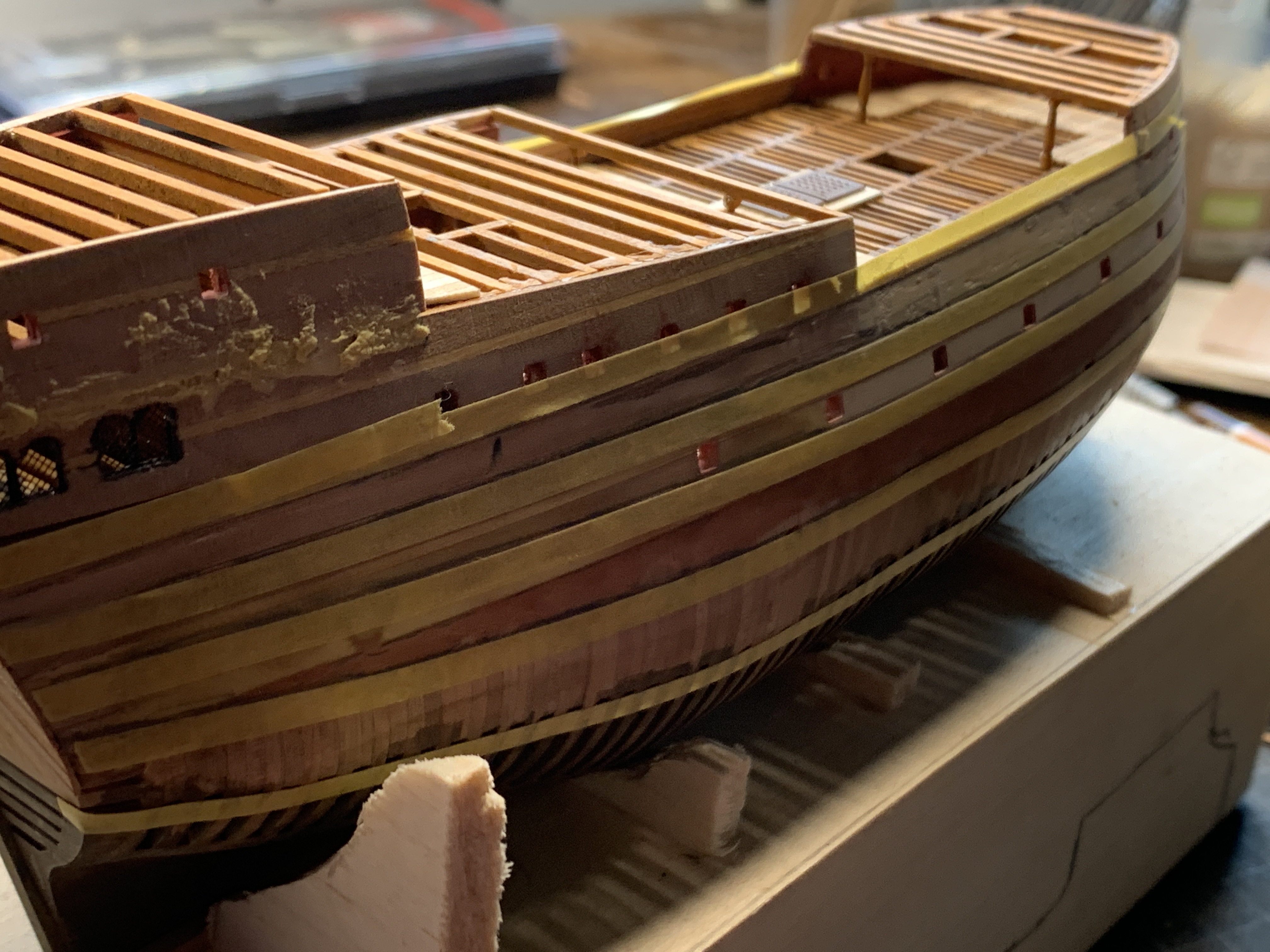 Można powiedzieć, że dopełznąłem do końca pewnego etapu. Poopdeck zamknięty. Będzie jeszcze trochę pokładów ale to dopiero przy okazji ronienia burt.