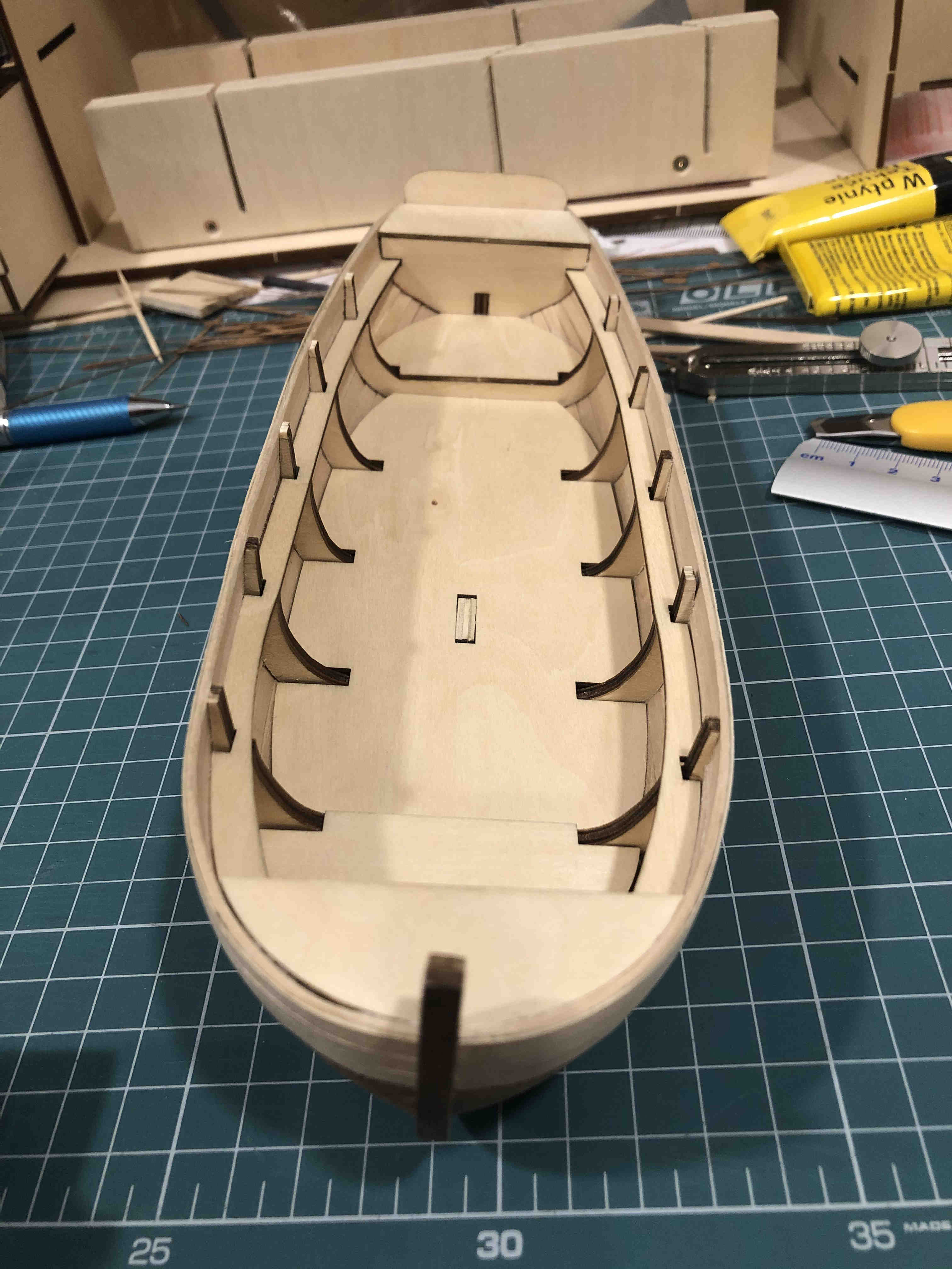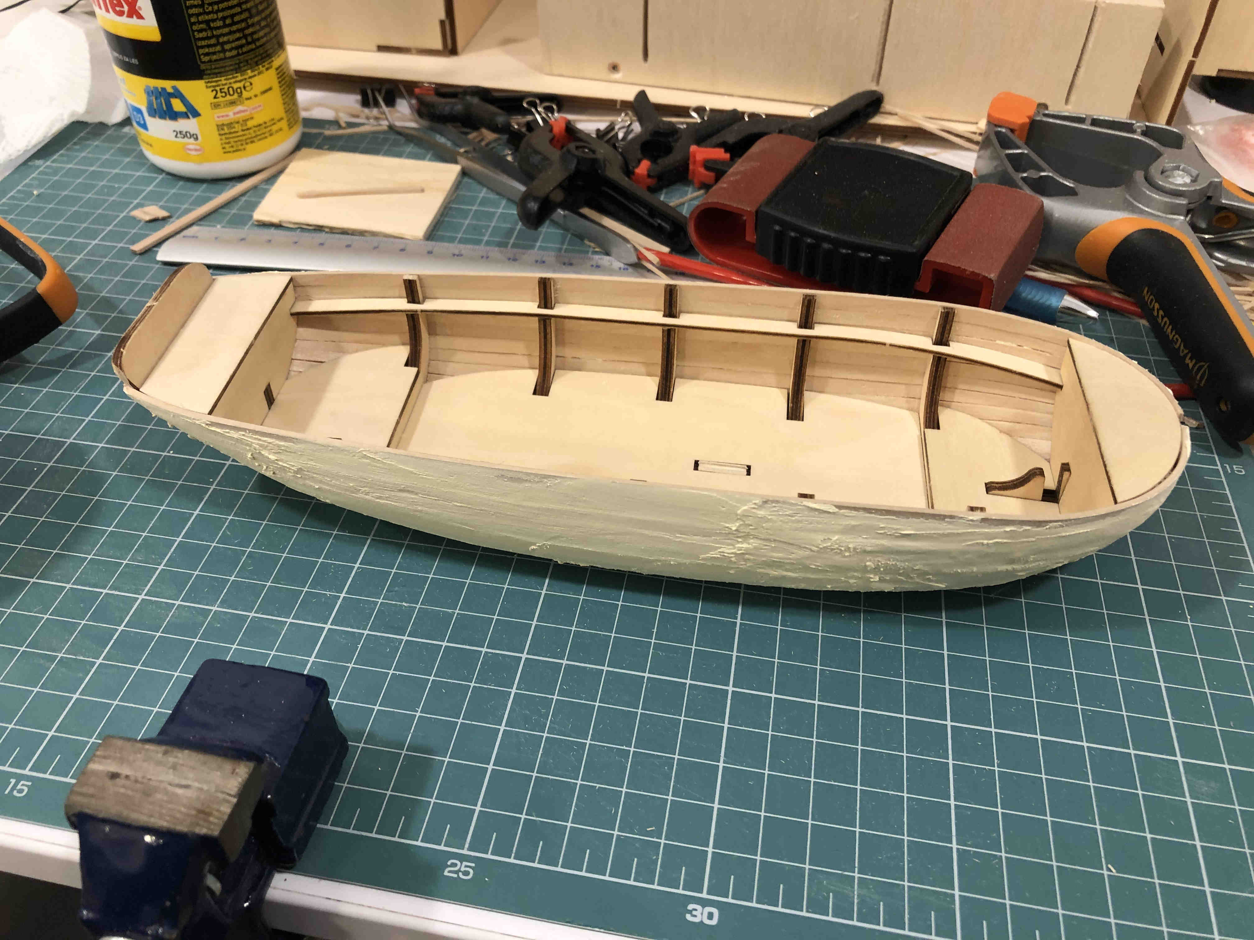 Chciałem podzielić się relacją z budowy wspomnianej w tytule szalupy. Liczę na konstruktywną krytykę i porady, które pozwolą mi rozwijać swoje umiejętności modelarskie.