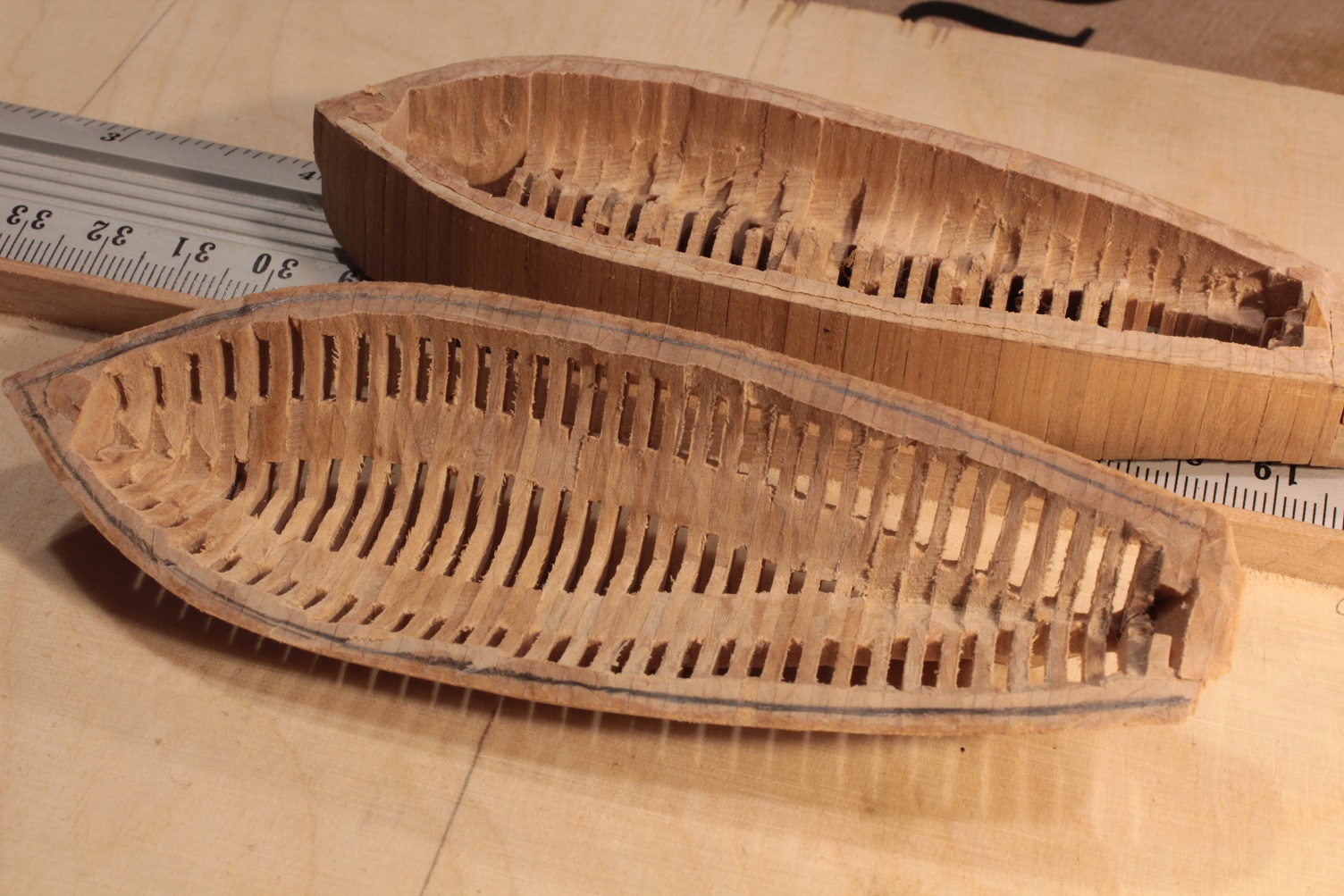 Tak z doskoku dłubię dla zabicia myśli już któryś dzień. Normalnie obróbka tych wręg to jedno przedpołudnie lub popołudnie. Kadłub rozdzieliłem (jedna wręga tylko pękła, już naprawione) na pojedyncze wręgi.