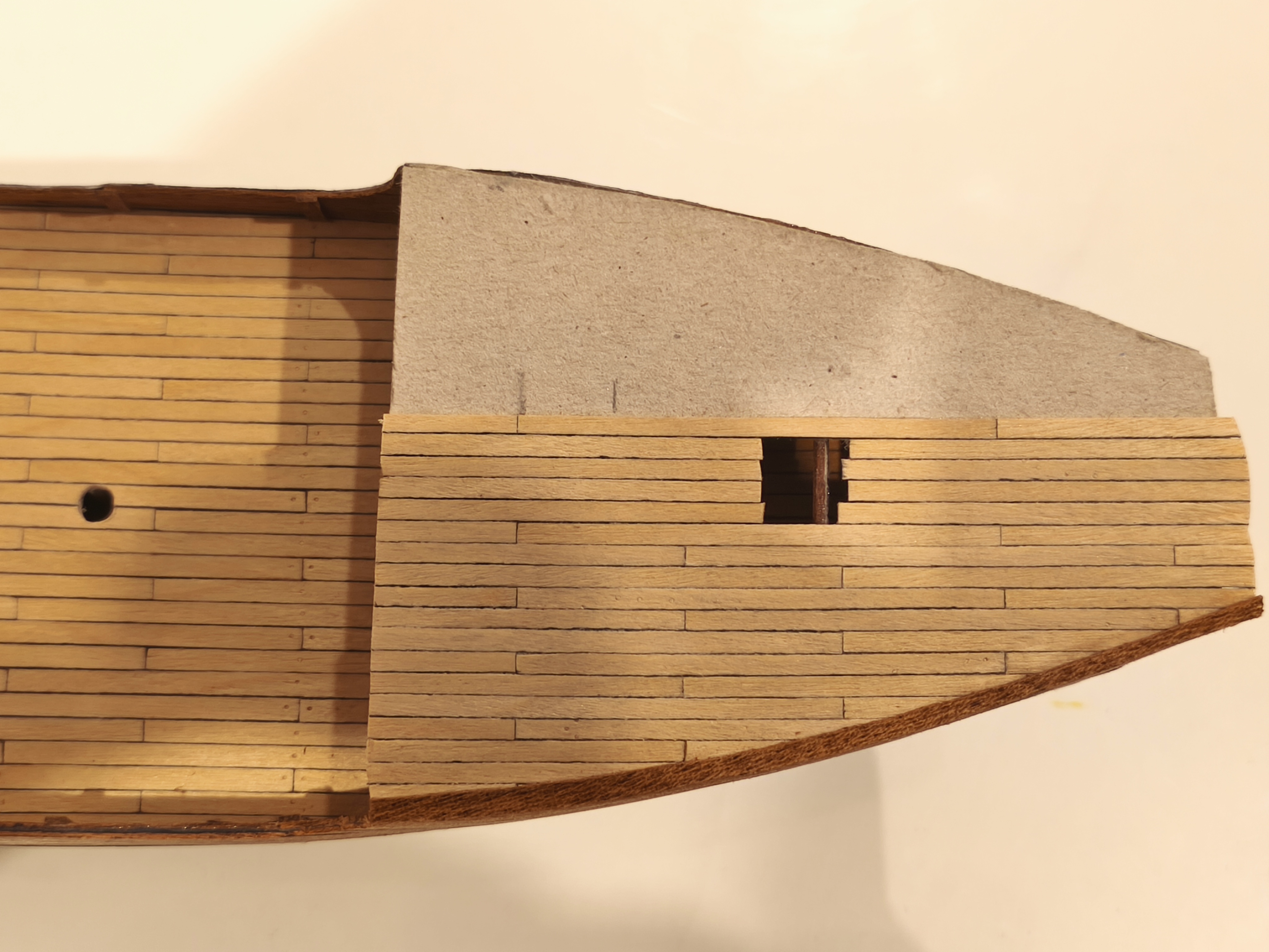Zaczynam burty co idzie strasznie wolno bo muszę fornir ciąć po łuku. Zobaczymy czy część podwodna gdzie trzeba planki jeszcze skręcać się uda czy fornir się podda.