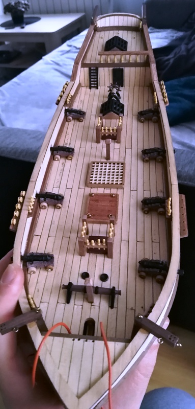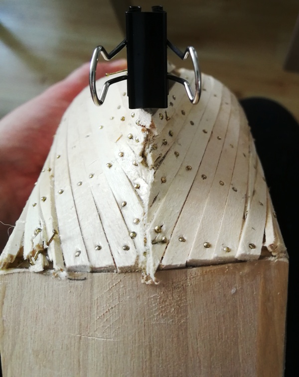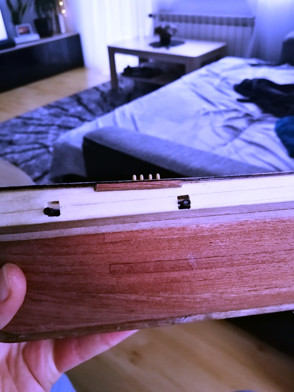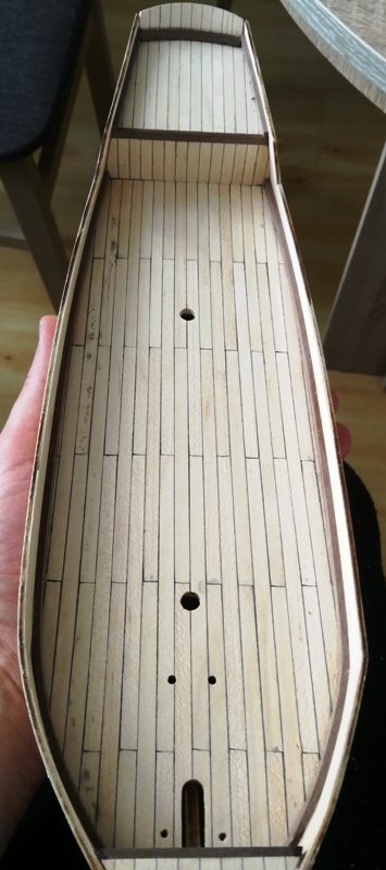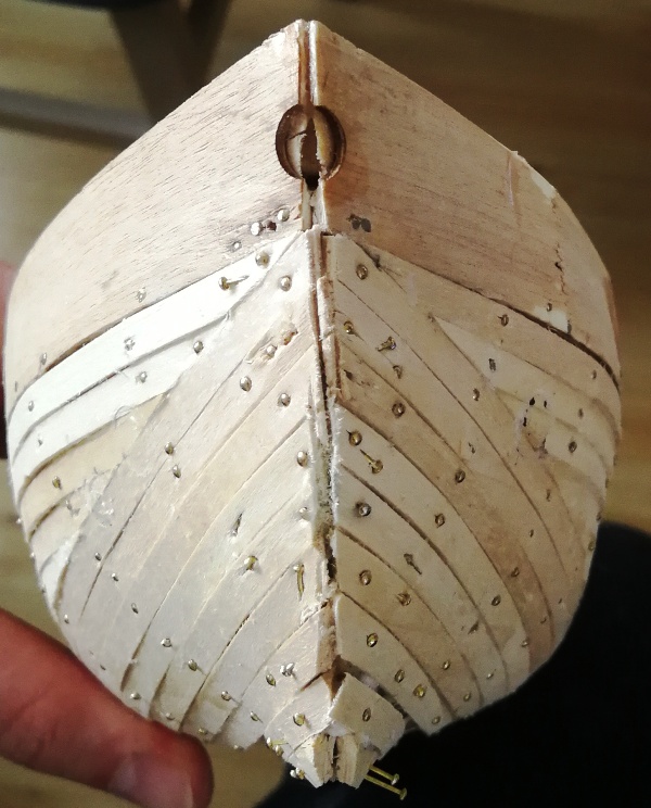 Mi się wydaje, że będę poszywac kadłub od niższego pokładu "działowego" , tam gdzie bukszpryt/ Dziób  zaczyna się wydłużać , ma to sens? .