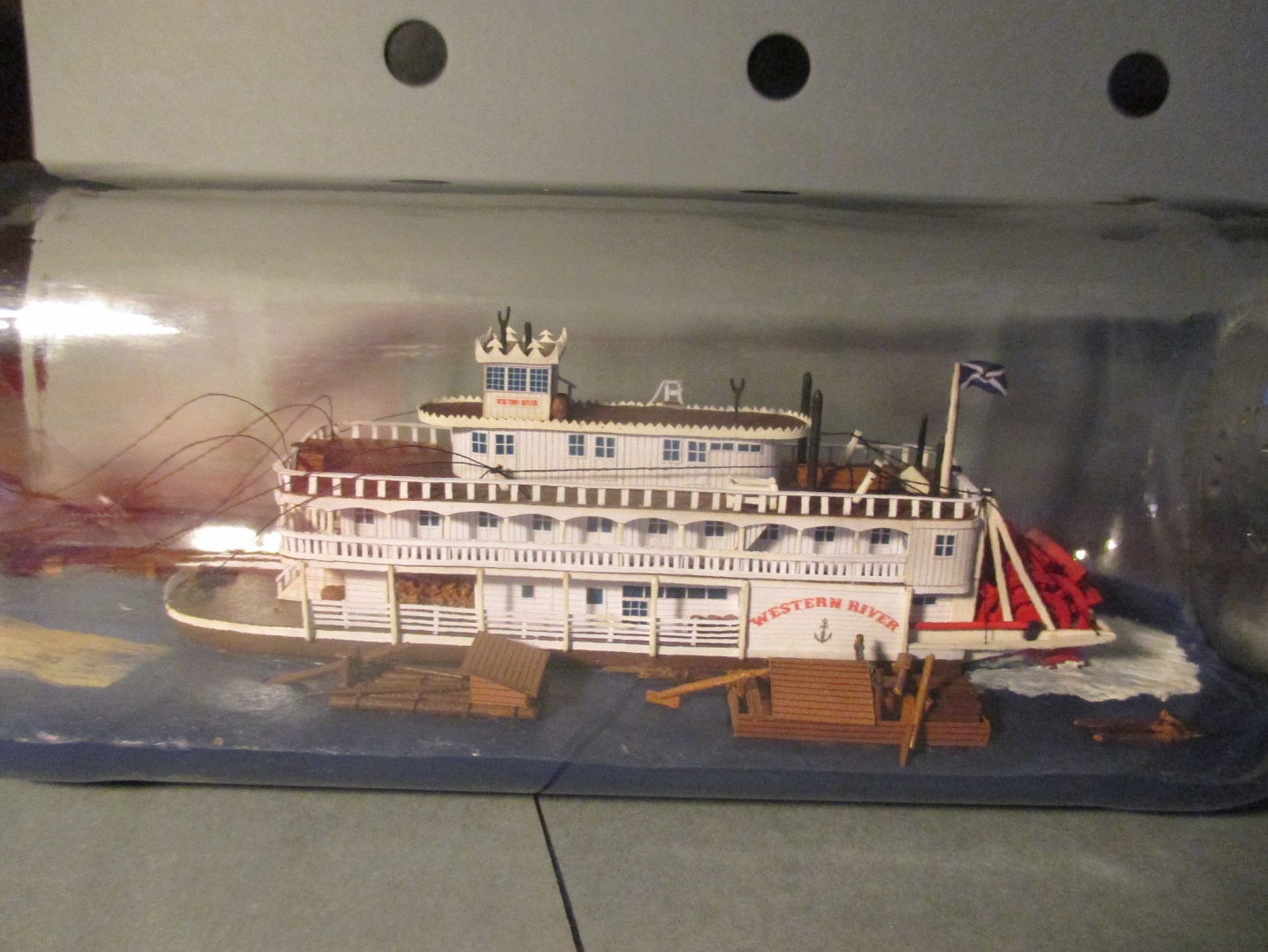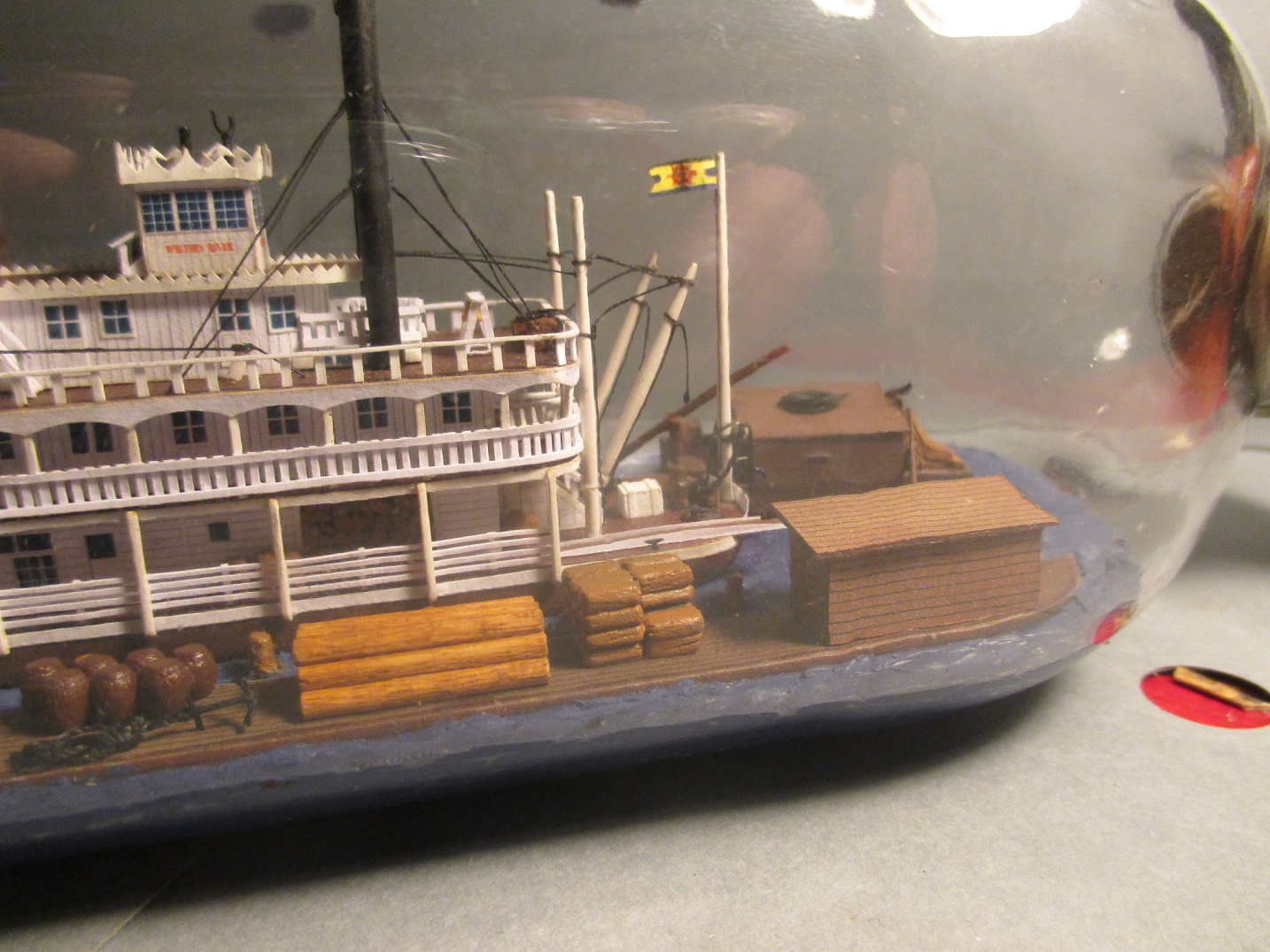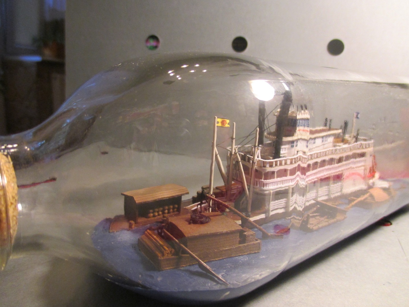 To już jest koniec relacji z budowy.Wszystkie części są na swoim miejscu.Było ich chyba 41.Butelka zakorkowana i ustawiona na półce obok innej butelki, którą wypełniłem 24 lata temu.