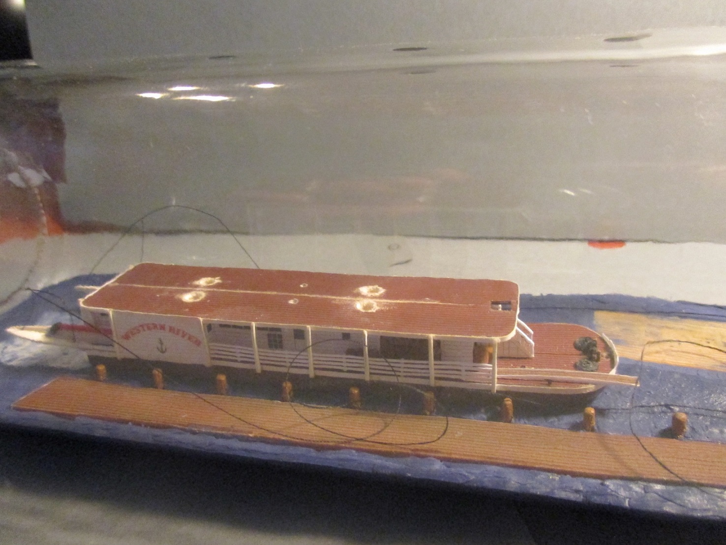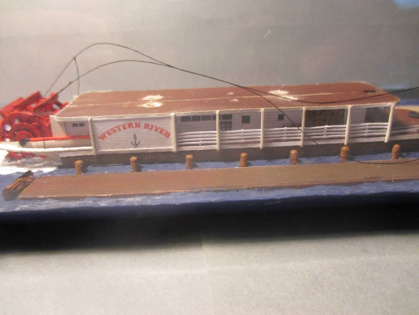 Tak właśnie sobie wymyśliłem małą dioramę.Chciałem żeby coś się działo w środku a nie był to tylko sam statek. Wstawię jeszcze jakieś towary na pomoście oraz mam zamiar zrobić wydobywający się dym z kominów.