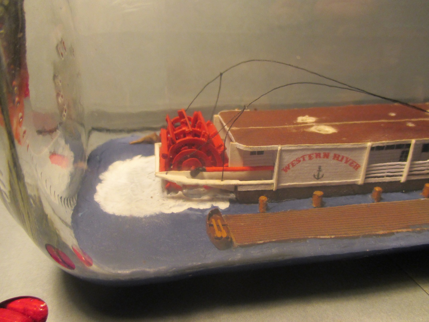 Jakoś moja wyobraźnia mi mówi, że dymy z komina na postoju przy pomoście to rzecz naturalna. Ale koło napędowe na postoju bić piany nie powinno. Chyba, że moja wyobraźnia jest chora i źle mi mówi.