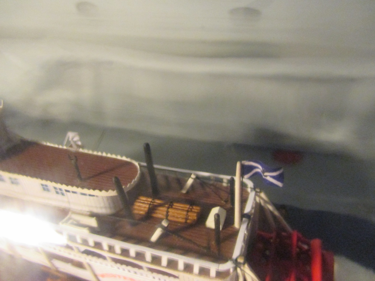 Zamontowałem zapomniane kominki i maszt.Udało się bez żadnych problemów.Ustawiłem na pomoście deski i skrzynie.Teraz czas na kominy i olinowanie.Trochę się boję tej operacji.Szkoda byłoby coś sknocić na koniec budowy.