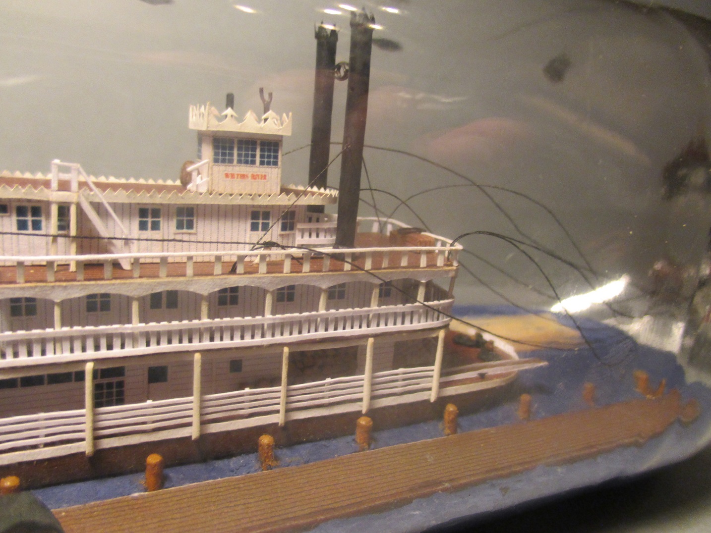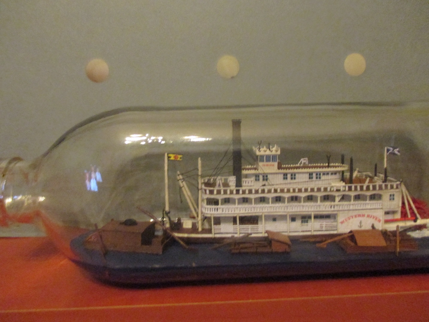 To już jest koniec relacji z budowy.Wszystkie części są na swoim miejscu.Było ich chyba 41.Butelka zakorkowana i ustawiona na półce obok innej butelki, którą wypełniłem 24 lata temu.