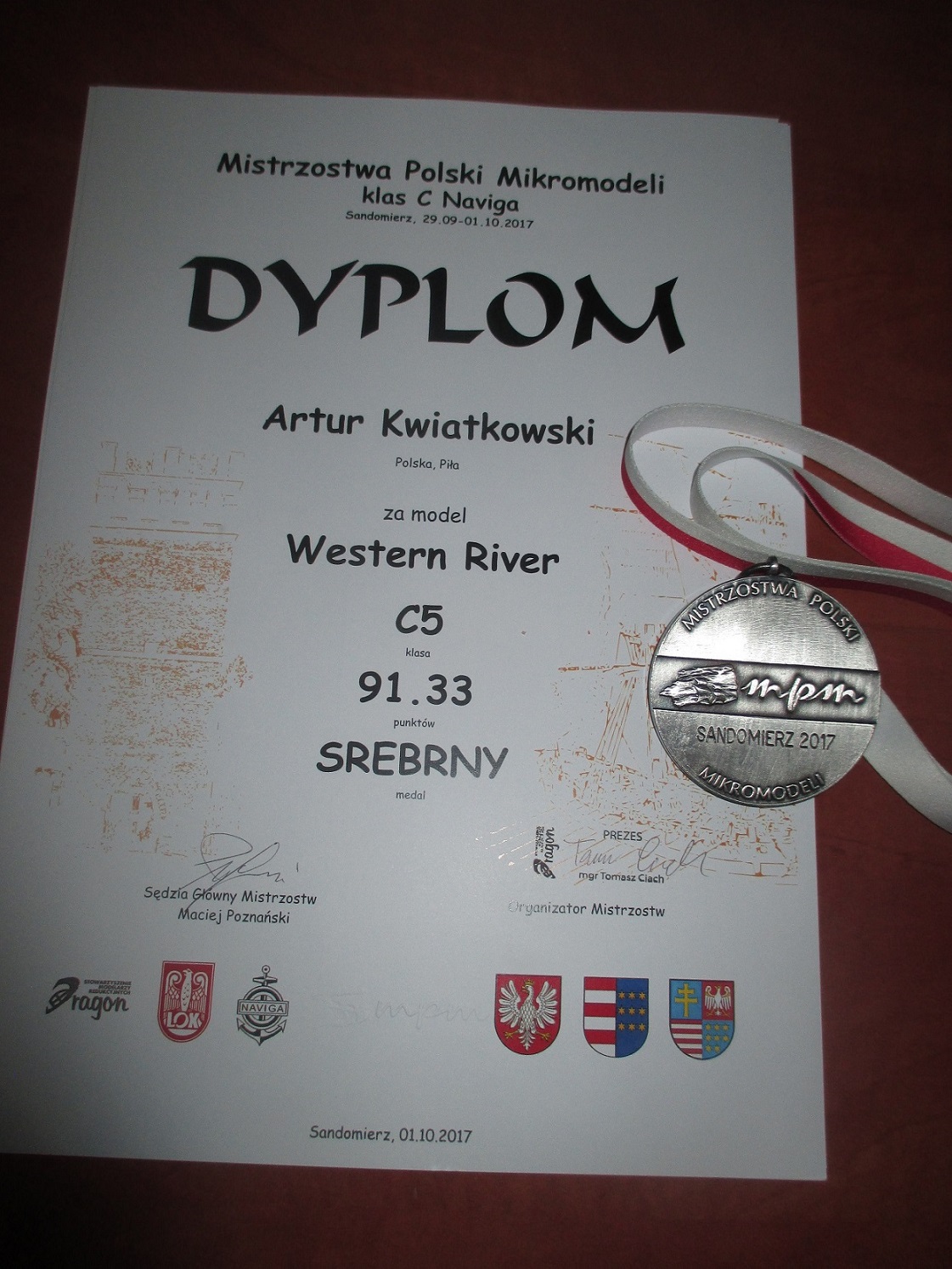 Mistrzostwa Polski Mikromodeli w Sandomierzu zaliczone. Na tak pięknie zorganizowanych zawodach jeszcze nie byłem. Jestem zachwycony organizacją. Western River zdobył srebrny medal z wynikiem 91,33 punktów.