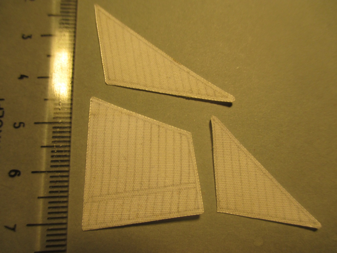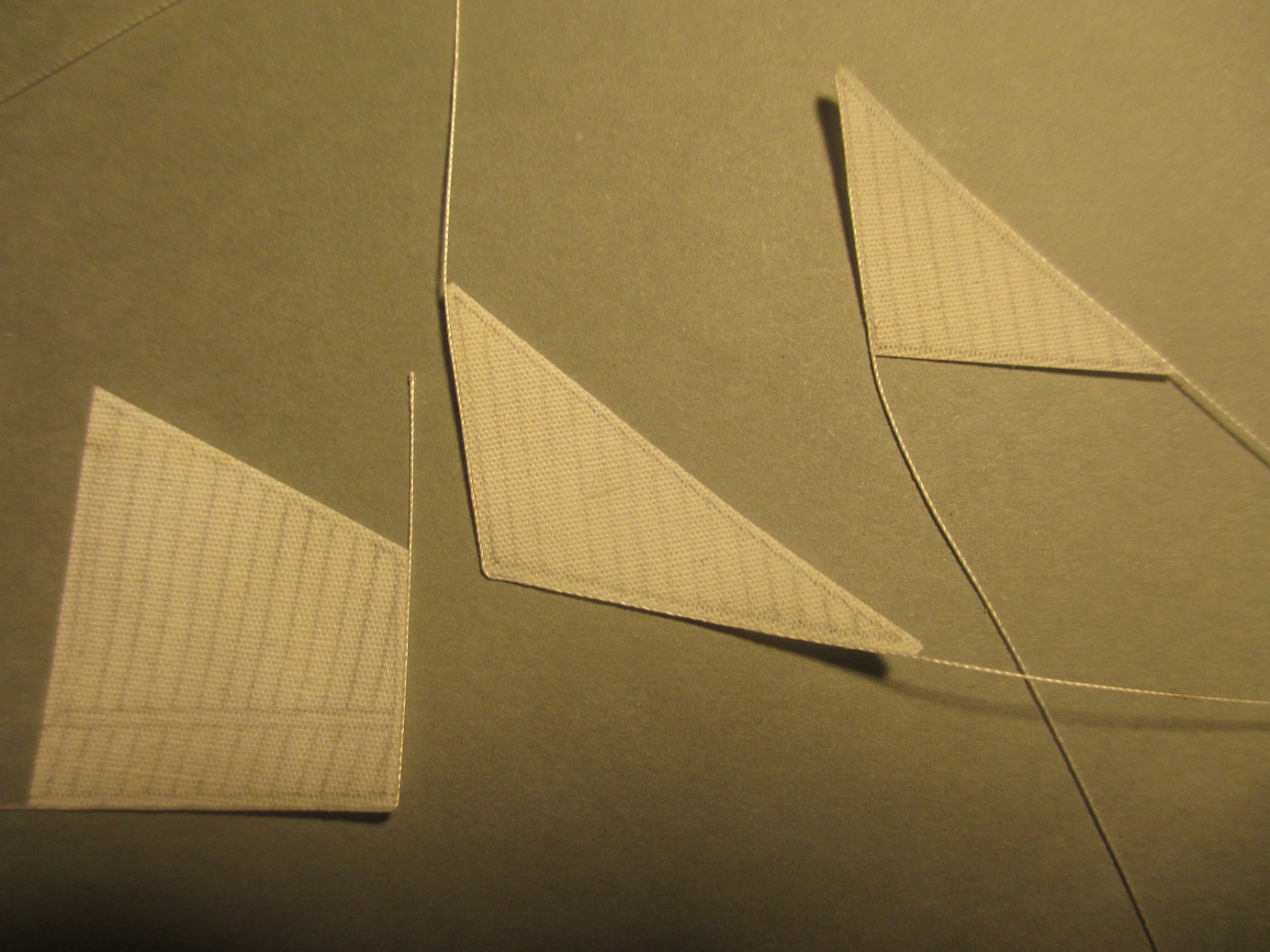 Wykonałem trzy pierwsze żagle.Udało mi się nawet przykleić liklinki. Żagle nasączone rozwodnionym vikolem, a po wyschnięciu zanurzone na chwile w herbacie. Już nie są takie białe.Żagiel rejowy z poprzedniego mojego postu muszę zrobić jeszcze raz. Nie podoba mi się.
