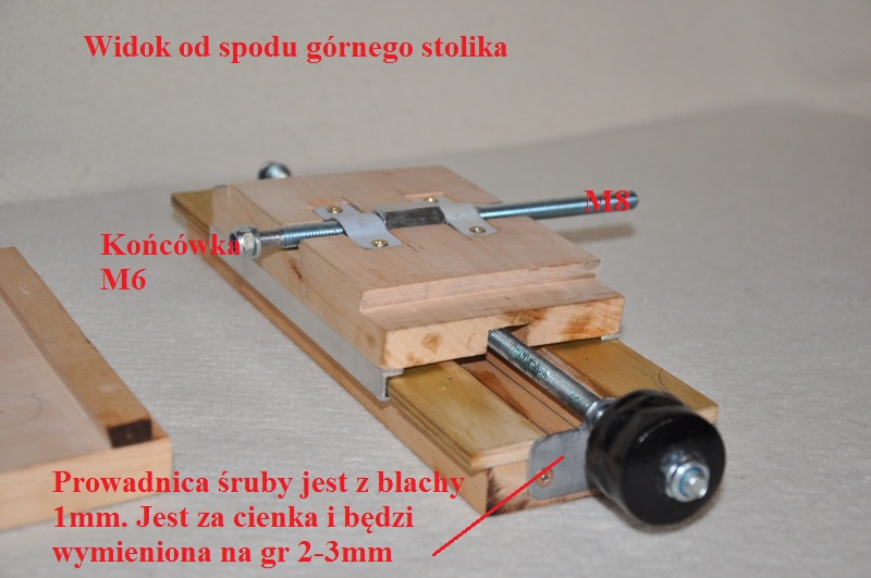 Pytałem tak z ciekawości.U mnie górny stół jest bez śruby.Ustawiam go i blokuję a jak mam coś do frezowania wzdłużnego to go przesuwam ręcznie.Chyba,że się skuszę i zrobię tak jak u Ciebie.To wtedy się zgłoszę po podziałki.Narazie dzięki.