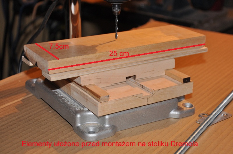 Zamocowałem stolik do stojaka Dremela i zrobiłem próby.