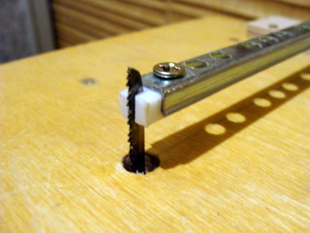 Zrobiłem kiedyś podobną maszynkę ale nie chciało mi to ciąć tak jak to sobie narysowałem w głowie. Brzeszczot się wyginał we wszystkie strony i lepiej mi było ściągnąć wyrzynarkę z tej maszynki i trzymać ją w ręce...wtedy cięło po prostej.