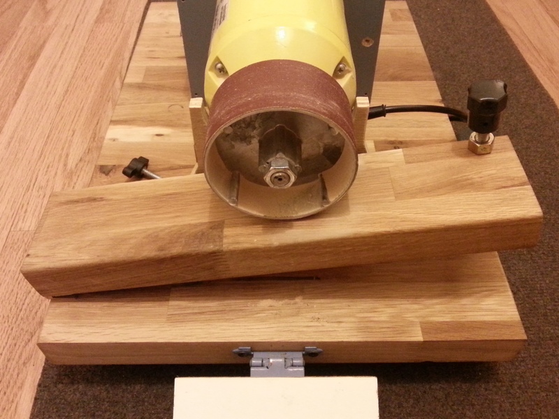 Wszystko jasno opisane i pokazane, łącznie z opisem budowy kątomierza, który przedstawił kolega Jarek. W swojej konstrukcji wprowadziłem kilka drobnych zmian, głównie ze względu na braki materiałowe, jak również na pomysł zaadaptowania oryginalnego bębna szlifierki do ścierarki. Myślę że nie wyszło tak źle. Jak na potrzeby początkującego modelarza , czyli mnie, to sprawdza się to ponad moje oczekiwania. Jako podstawę pod szlifierkę wykorzystałem solidną dechę z pozostałości po blacie kuchennym. Do tego trochę sklejki 13mm, płyty wiórowej, jedna mała deska do krojenia, plexi 6mm, trzy zawiasy, mocna taśma dwustronna, kilka śrub różnej maści i odrobina wyobraźni. Resztę niech opowiedzą fotki...