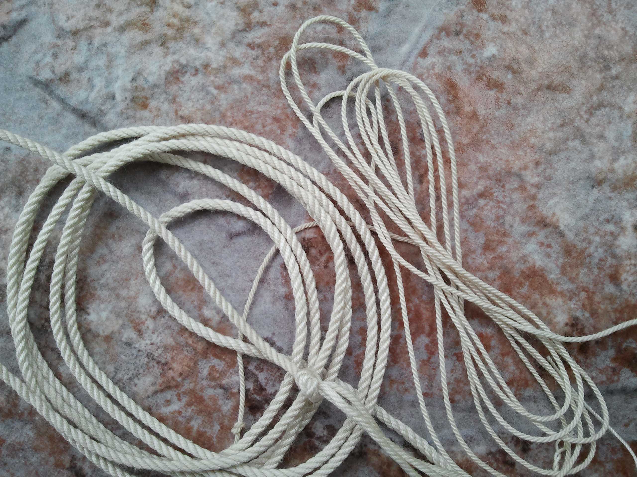 Pierwsza próba z kordonkiem w kolorze ecru.Prosto z ropewalk'a,nie impregnowane.Ta grubsza 12 nitek,cieńsza 3 nitki.
