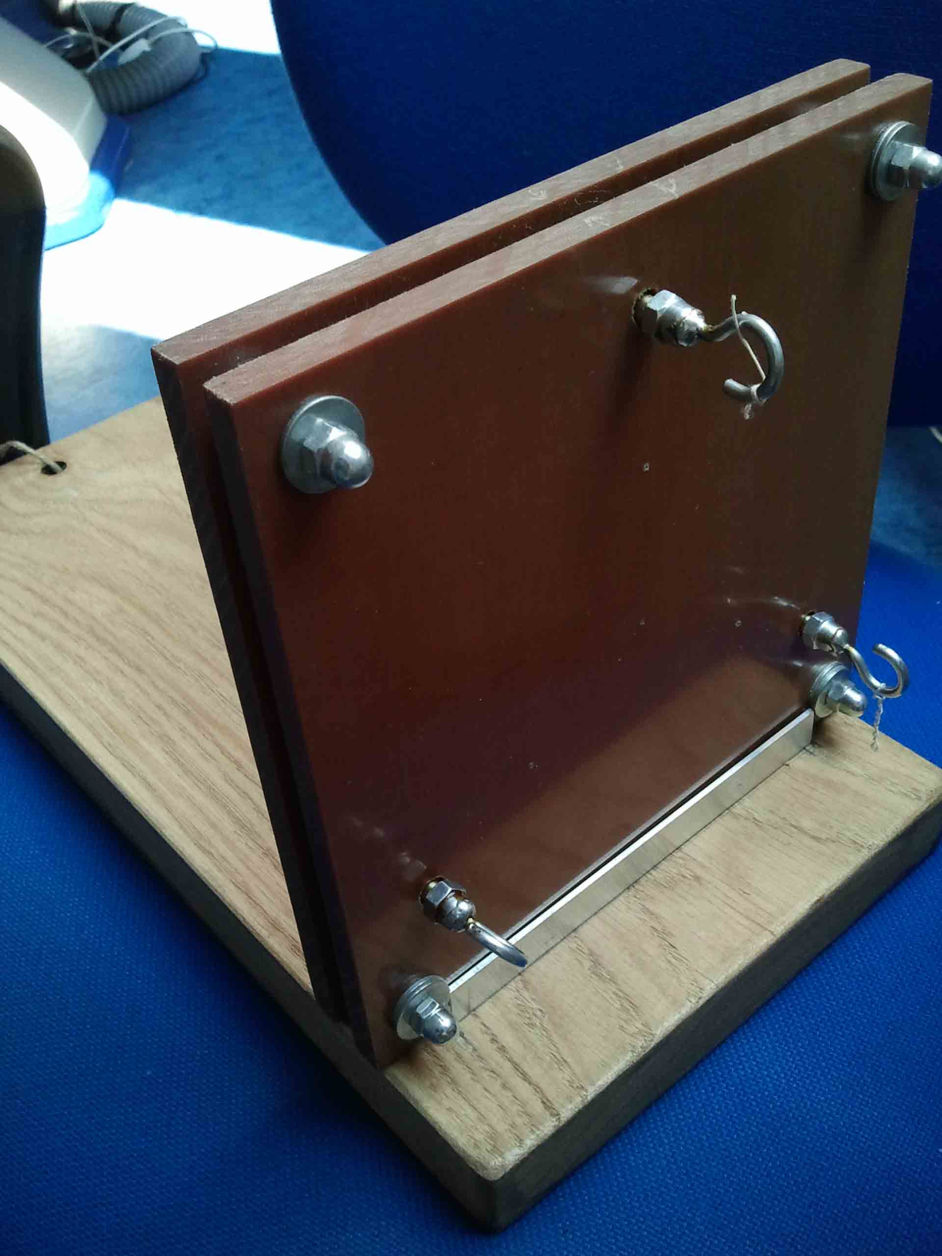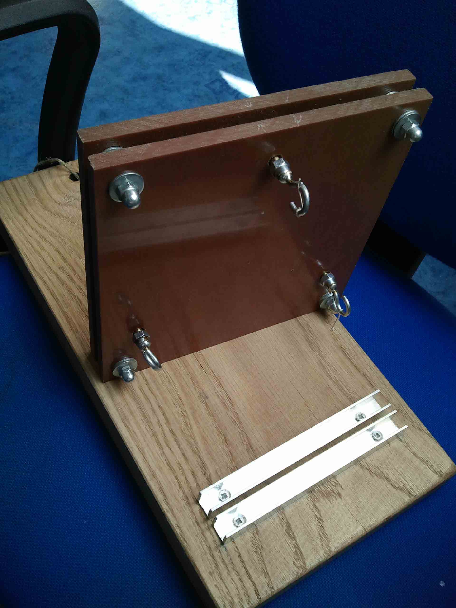 Podkładki były pod ręką i łatwiej było ustawić odległość między płytami,przyjdzie czas na ładne tulejki dystansowe.Co do haczyków to muszą być wymienne,w perspektywie będzie można wymienić je na zestaw szpulek do kręcenia długich linek.Mam pomysł jak to zrobić