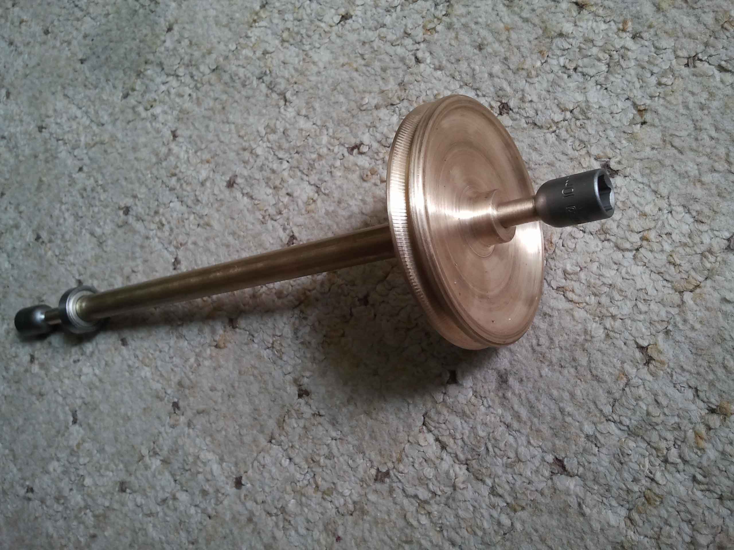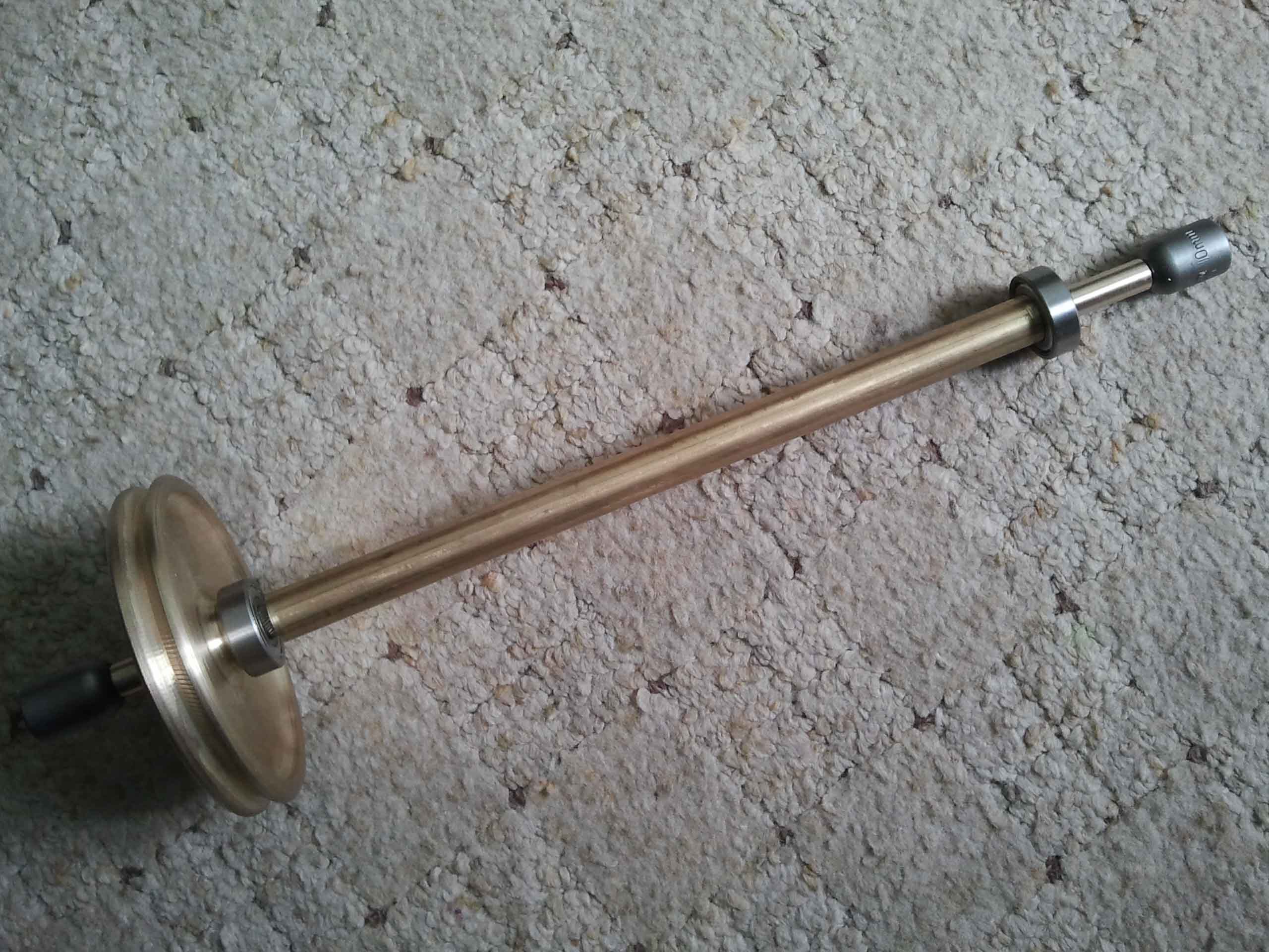 Wytoczyłem oś napędu.Będzie miała dwa sprzęgła do prawych,i po obróceniu o 180 stopni ,lewych obrotów.Koło pasowe będzie napędzane przez silnik od maszyny do szycia,tur-2,odpada problem z regulacją obrotów.