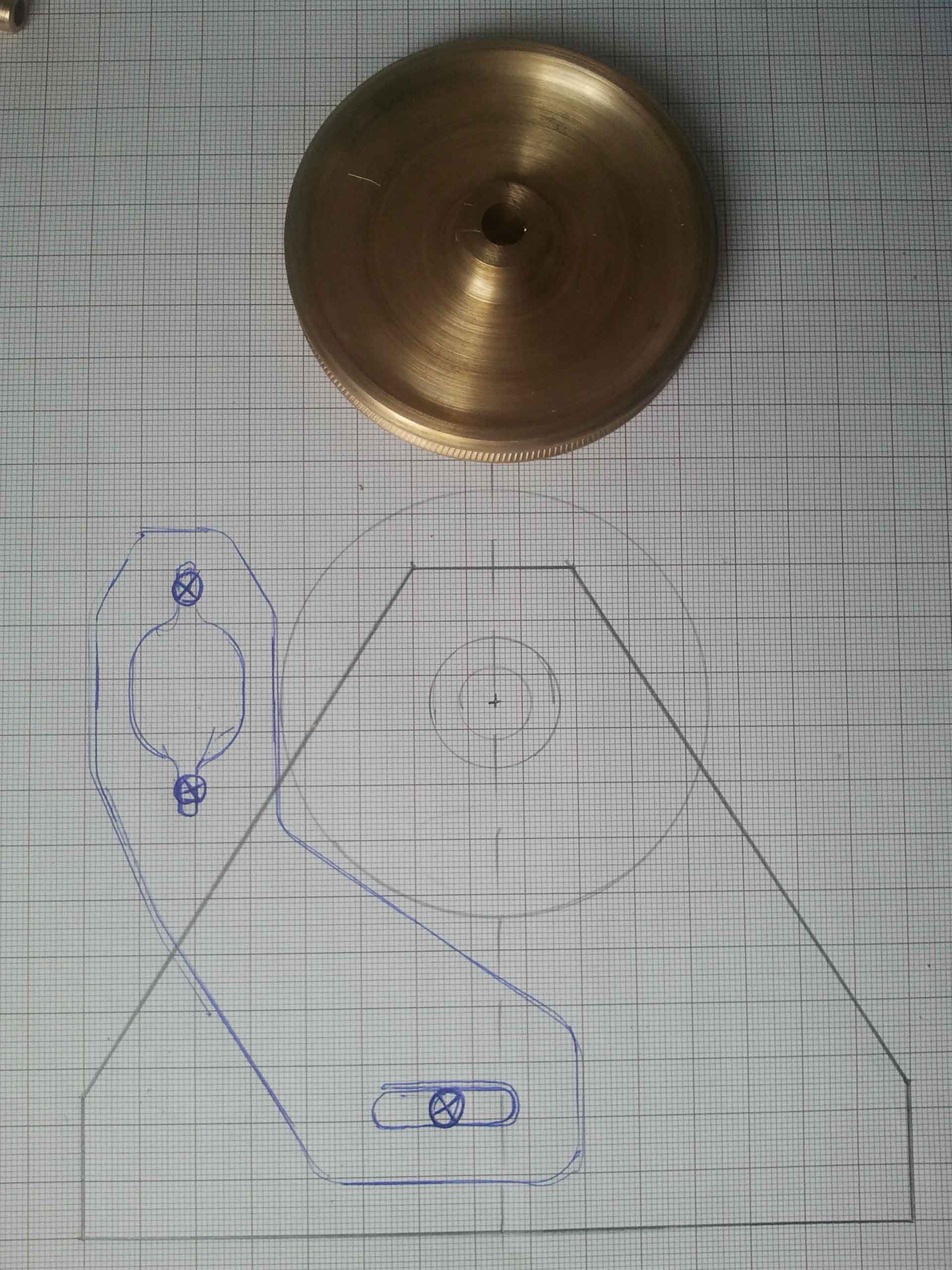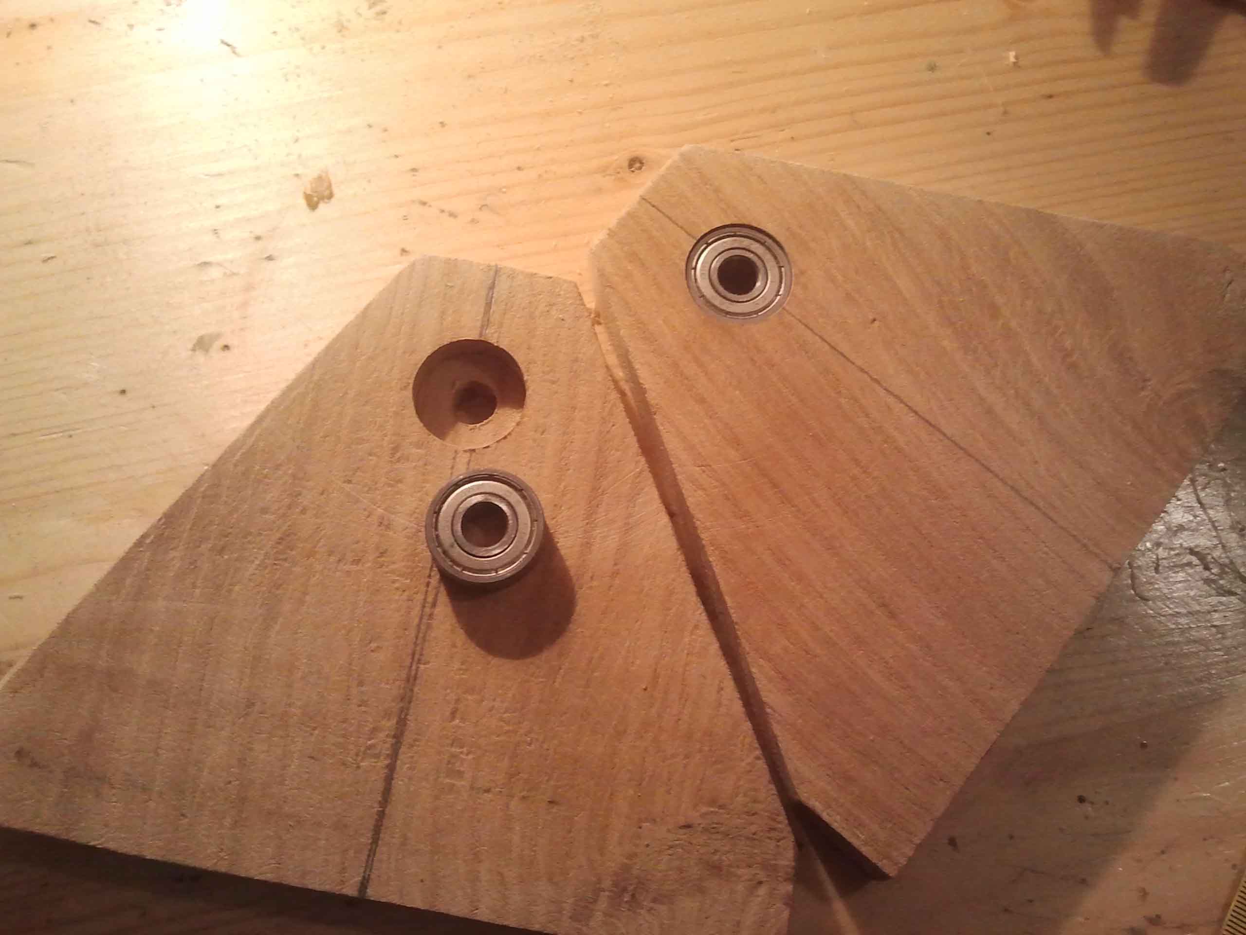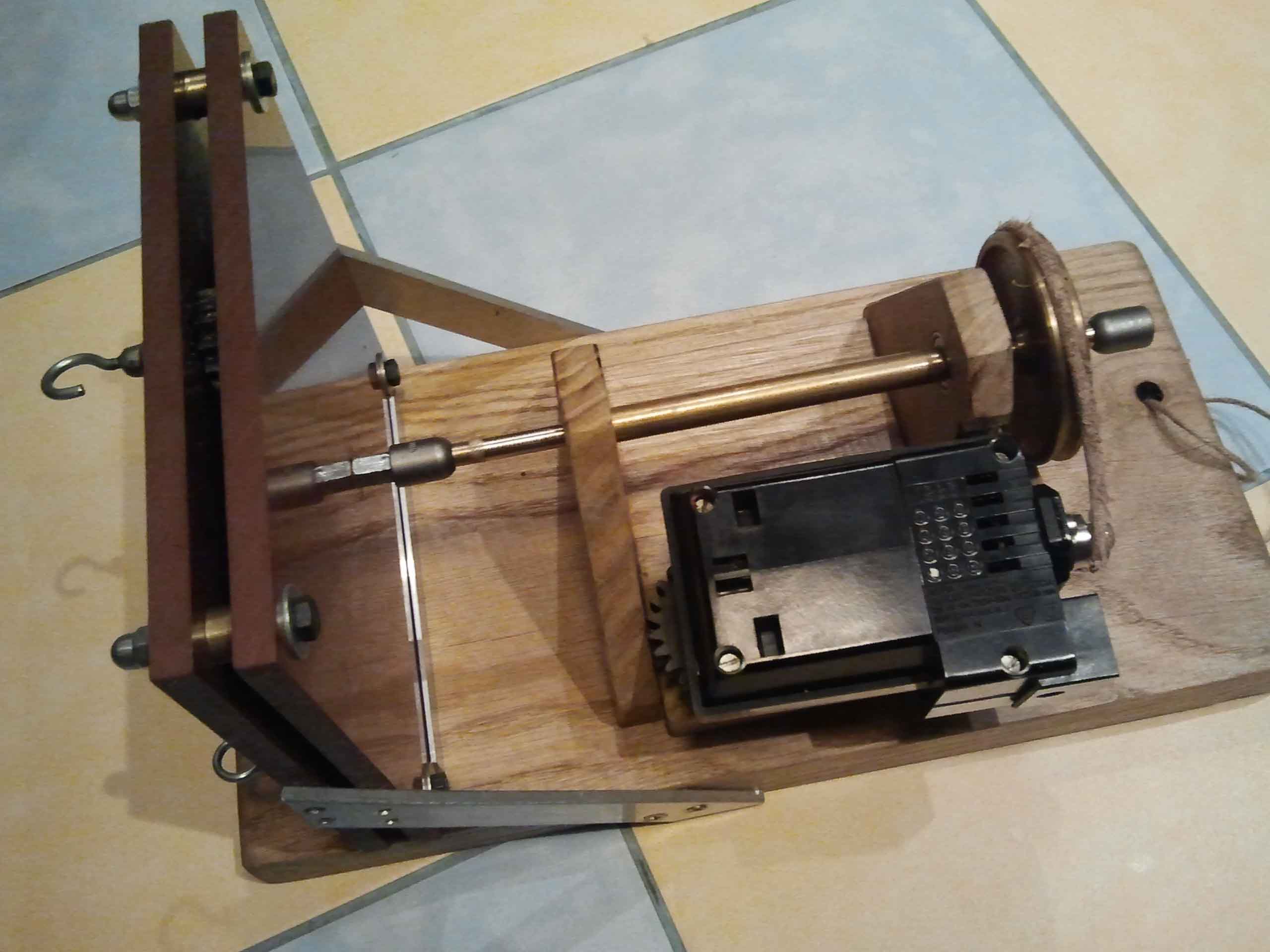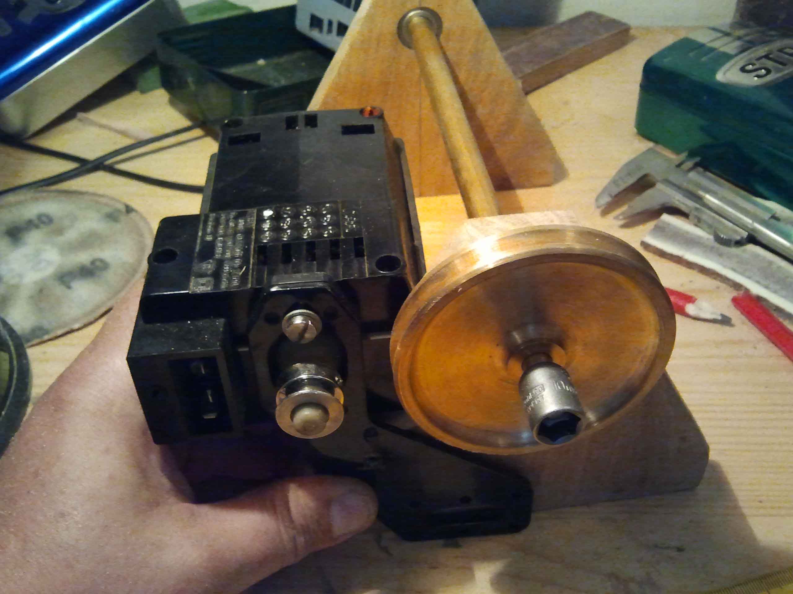 Następne prace przy napędzie.Wywierciłem otwór w kole pasowym pod klin mocujący go z osią napędową.