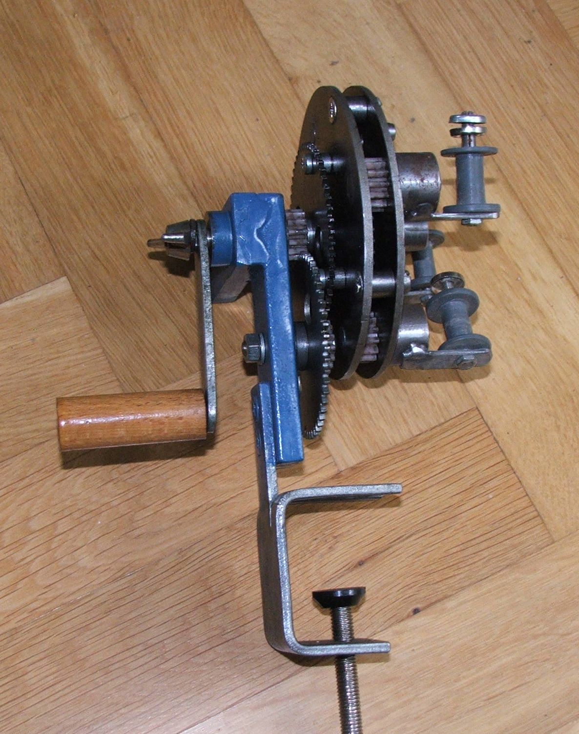 Zbudowałem taką zwijarkę która na wrzecionach miała obracające się szpulki z hamulcem i ponad to obracała się wokół własnej osi ze stałą prędkością wobec obrotów szpulki.Dla grubych nitek to wystarczało dla cienkich trzeba było dokręcać linkę.Pozostało jeszcze wykonać ruchomą szpulkę która zwijała by linkę i jeszcze kręciła się wokół z dobraną prędkością.Rozwiązałem to stosując przekładnię ze zmiennym przełożeniem sprzęgniętą ze zwijarką ale nie wykonałem w metalu bo nie miałem czasu a ta którą mam w zupełności mi wystarcza.Może kiedyś to zrobię R