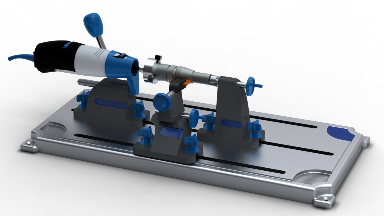 Napęd to zamontowany w uchwytach ze sklejki Dremel serii 300.