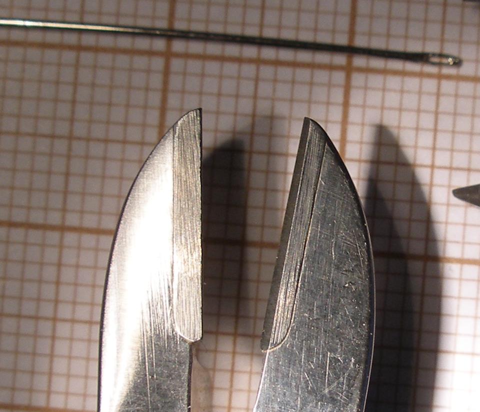A tak po przecięciu igły stalowej (do szycia, hartowanej, nieco powyżej na fotce) 0.5mm :