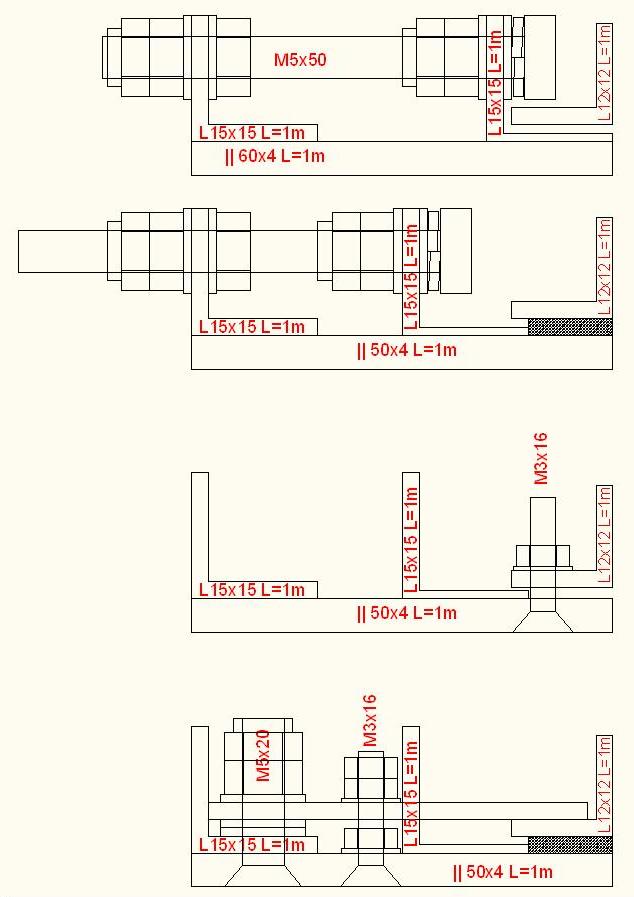(śruby nie obracają się gdy optymalnie główka jest przykręcona do kątownika "wyginającego się", zastosowane podkładki sprężyste i płaskie łby śrub dają możliwość odchylenia się kątownika od osi śruby o kilka stopni.)