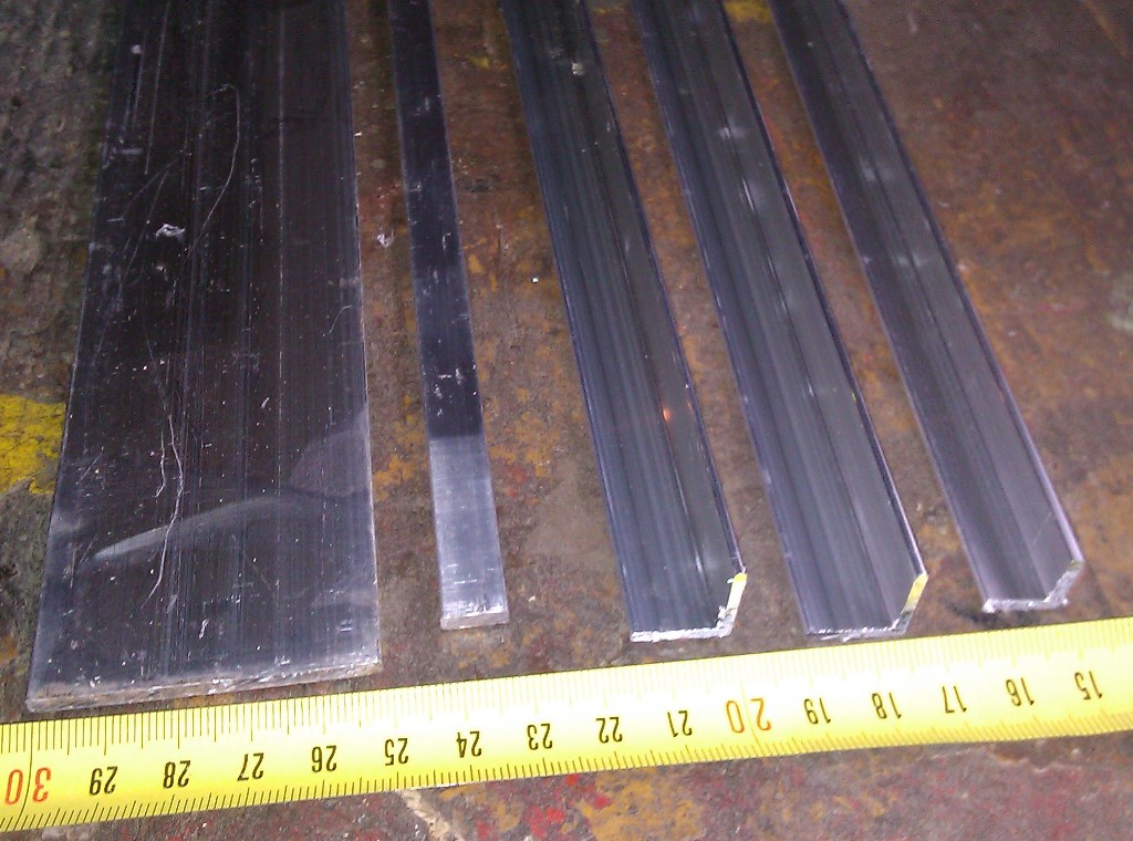 Jeden z kątowników 15x15x2 ponacinałem na jednym z ramion co 1 cm, to samo ramię wcześniej prze-frezowałem do grubości 1mm. W ten sposób powstała listwa giętka jednostronnie - jako element stanowiący oparcie zwężanej planki.