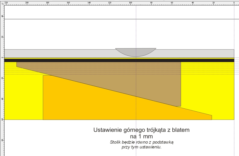 Na środku zaznaczyłem jeszcze miejsce kołków prowadzących i ustalających pozycję blatu.