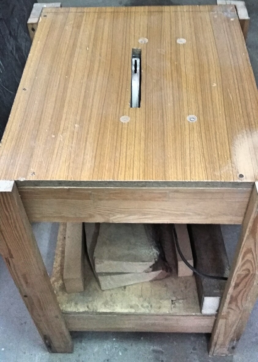 Pomysł dobry, tylko wykonanie niepoprawne. W tej postaci, ta piła nadaje się do cięcia drewna na opał. Dlaczego? Już wyjaśniam. Blat z płyty paździerzowej jest zbyt gruby, zabiera wiele cennej wysokości roboczej. Sklejka o gr. nie mniejszej niż 8 mm w zupełności wystarcza. Drugi błąd i to kardynalny to szczelina na tarczę. W tym przypadku ruchoma osłona tarczy powinna być schowana pod blatem, a nad blat wystawać sama tarcza. Szczelina powinna być ciut szersza od grubości piły czyli jej rzazu. A to dlatego, że podczas cięcia przy Twojej szczelinie zęby będą wyrywać włókna drewna nie podparte od spodu. Długość szczeliny powinna też być nie dłuższa niż długość wystającej piły ponad blat. Tuż za piłą powinien być umieszczony klin rozdzielający o grubości ciut większej niż rzaz. Powinna też być osłona zakrywająca zęby od góry. Chyba, że będziesz do cięcia zakładał okulary ochronne. Jeżeli masz zamiar zmienić blat, to warto moje uwagi wziąć pod uwagę.