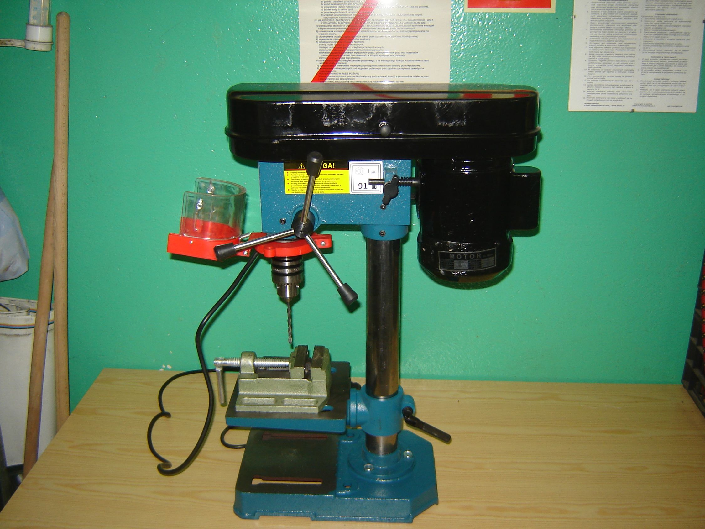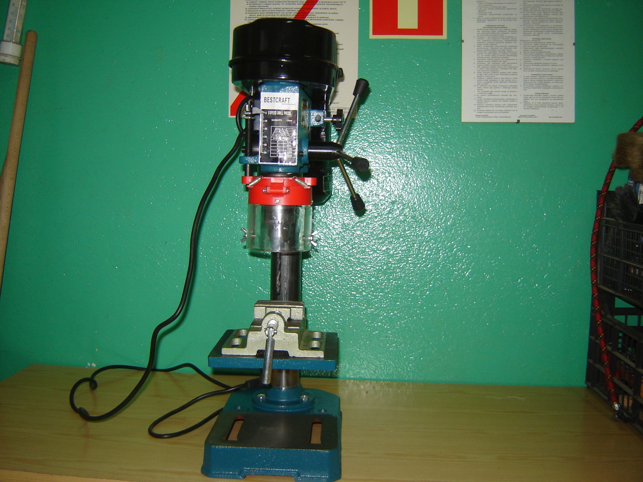 A ja zakupiłem taką wiertarkę stołową. W komplecie imadło. Wcale nie renomowanej firmy. Za niecałe 3 stówy razem z przesyłką. Już ją sprawdziłem dokładnie. Działa super nie ma żadnego bicia. Wierci równiutko i precyzyjnie. Jestem zadowolony. Wiertarka kolumnowa o mocy 1550W niemieckiej marki