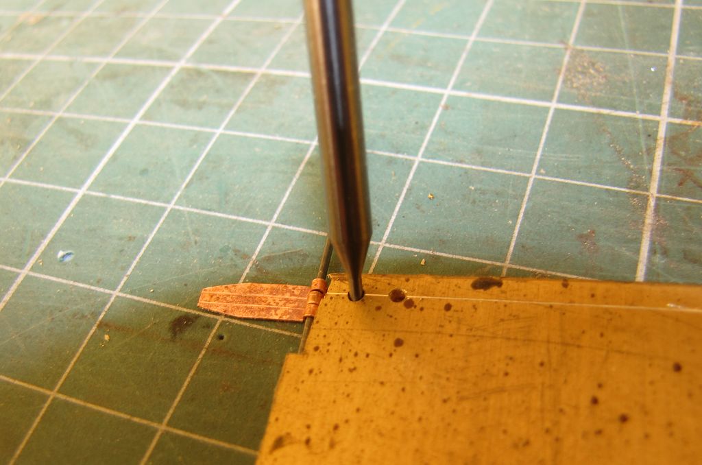 Pierwsze próby z blaszką 0.3 mm wyszły jak wyszły. Po 3 nieudanych próbach przerzuciłem się na blaszkę 0.1 mm. Tu są pewne sukcesy, aczkolwiek podobno zawiasy wyglądają na zbyt "chude" jak do skali.