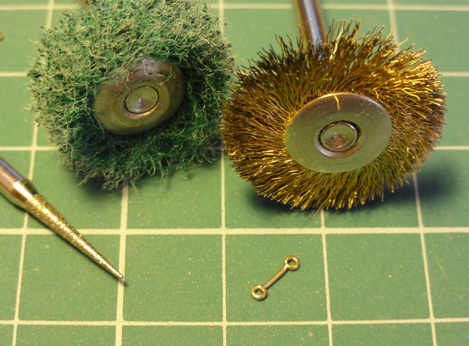 Do wyżej wymienionych czynności używam frezu diamentowego (pozwala na dopracowanie detalu np. wewnątrz oczka, jak i poprawę kształtu z zewnątrz. Następnie element szlifuję szczotką z włókna ściernego i na koniec szlif szczotką mosiężną.