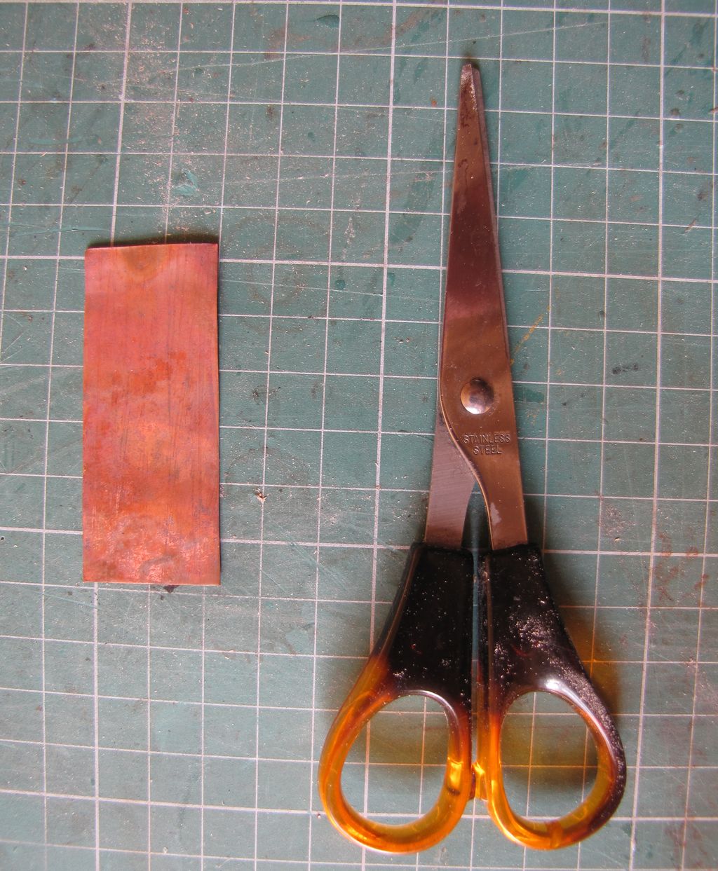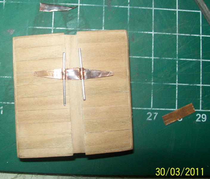 Kawałek blaszki miedzianej, szerokością odpowiadający dlugości zawiasów, odpuszczam nad płomieniem żeby dziada zmiękczyć. Dalej to nie ma co pisać, myślę że wszystko widać wyraźnie.