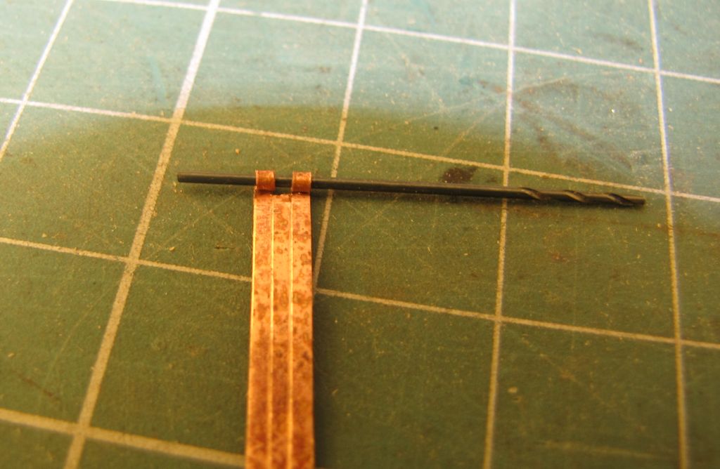 Kolego zawiasy szajs nie samowity, podklej tą cieniutką blaczkę na kawałek czegoś twardego klejem ca potem wytni to włośnicą równo i odklej. Nalklej to na właściwy luk i miejsce potem nawierć otworki 0.5mm wciśni drut i przytni go tak by odrobinę wystawał i będzie imitował łeb. Bo jak myślę to te zawiasy nie są ruchome i nie mają takie być. :D :D :D
