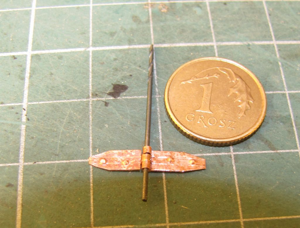 Pierwsze próby z blaszką 0.3 mm wyszły jak wyszły. Po 3 nieudanych próbach przerzuciłem się na blaszkę 0.1 mm. Tu są pewne sukcesy, aczkolwiek podobno zawiasy wyglądają na zbyt "chude" jak do skali.