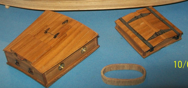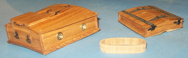 Nadbudówka pierwsza większa oraz luk na gotowo - do przyklejenia. Nadbudówka mniejsza czeka na pokrywkę.