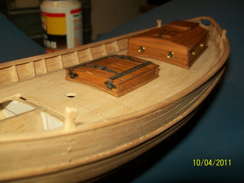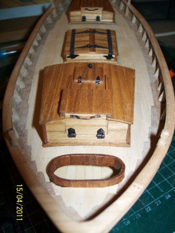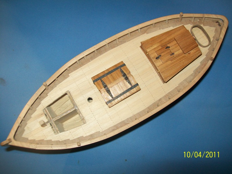 Raport kolejny - nadbudówki były by zakończone. Mogę ewentualnie pokusić się o komin na dziobowej zejściówce (jaką kuchnię tam mieli i komin montowali na czas gotowania).