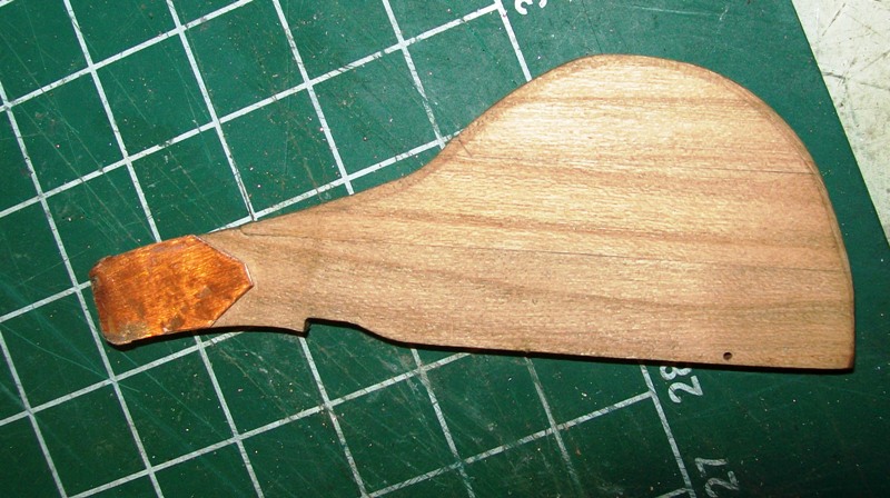 A na koniec prace nad sterem. Jest tam takie popierniczone okucie na górze steru. Miedź pomieszana z cyną, ale po oksydowaniu i tak nie będzie widać różnicy.