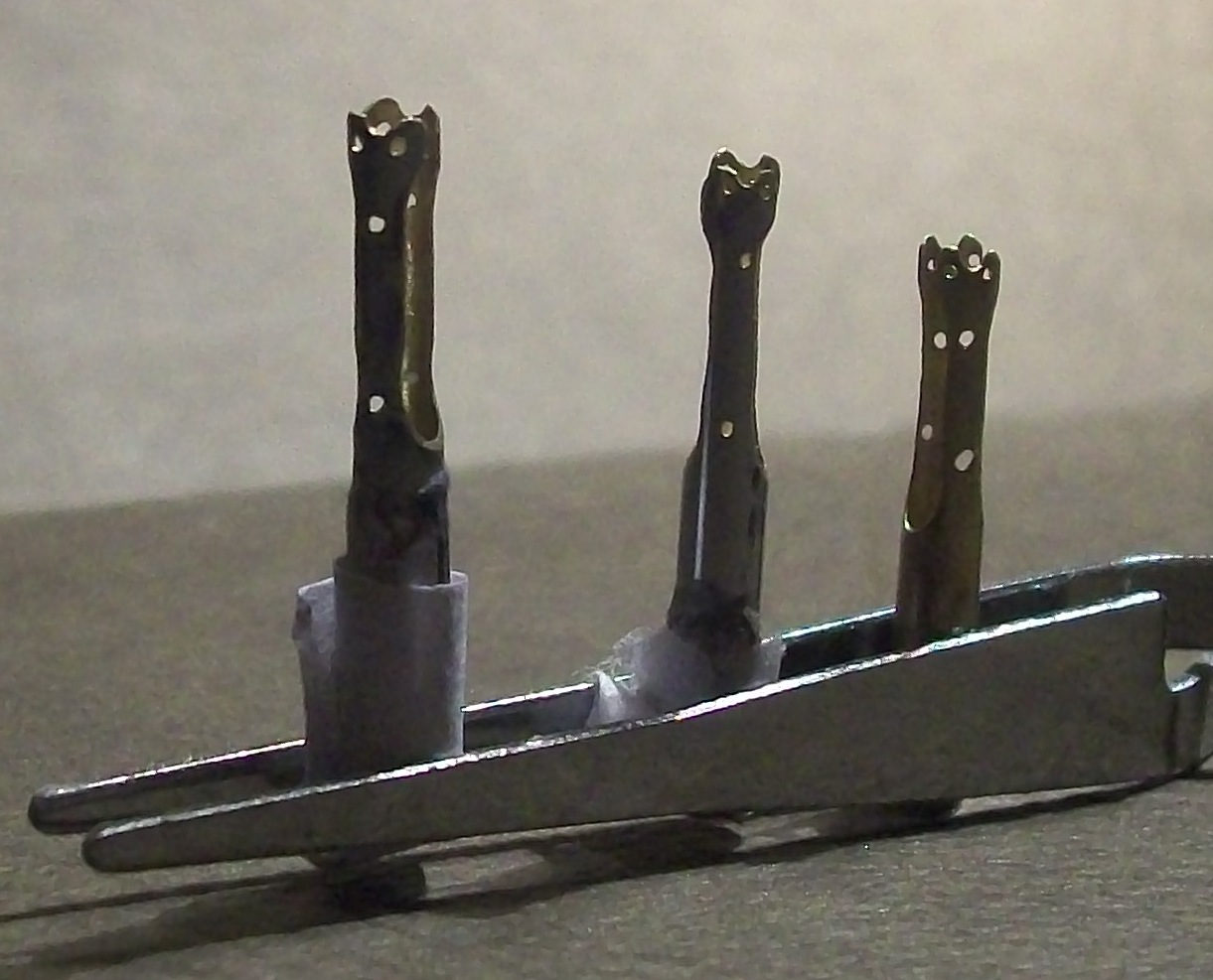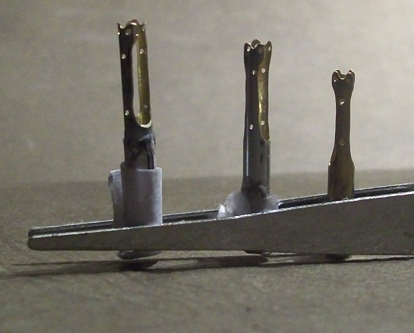 Od prawa do lewa - wczorajsza, pierwsza dzisiejsza i wersja ostateczna. Niestety obawiam się że przy tej skali niewiele widać różnic... W ostatniej wersji otwory wiercone są w osi.