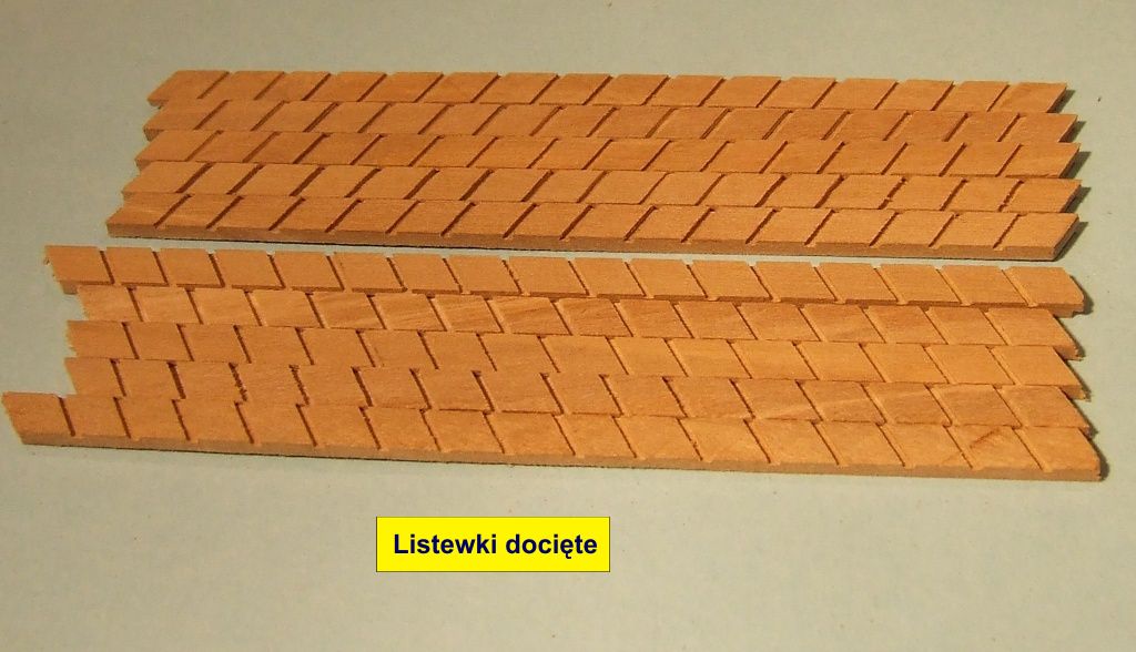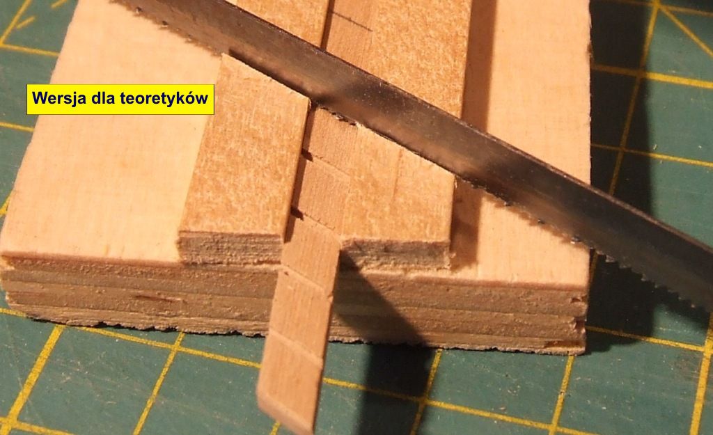 W czasie piłowania listewki muszą być na taśmie aby się nie przesuwały.